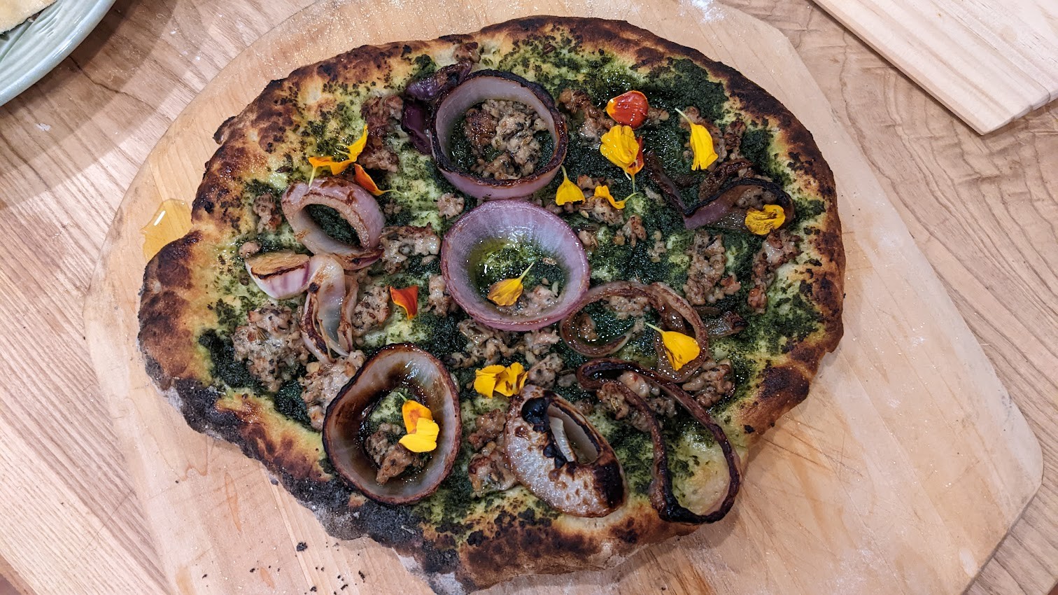 We had two tasting events prior, which helped us fine tune the menu into the 5 pizzas described below.- Focaccia with Olive Oil, Fresh Rosemary and flake Sea Salt.
