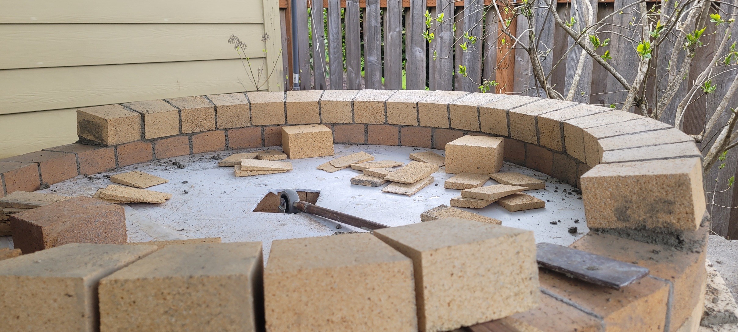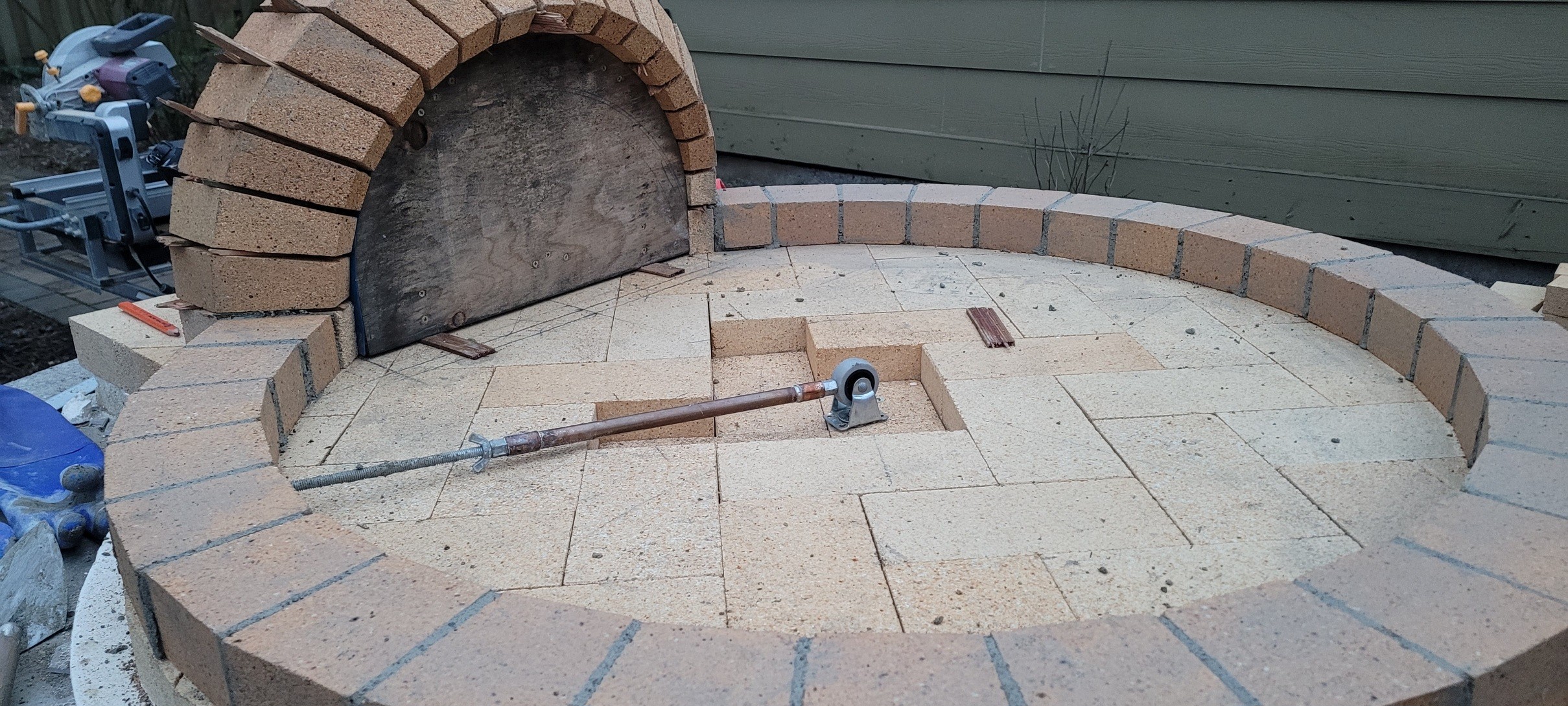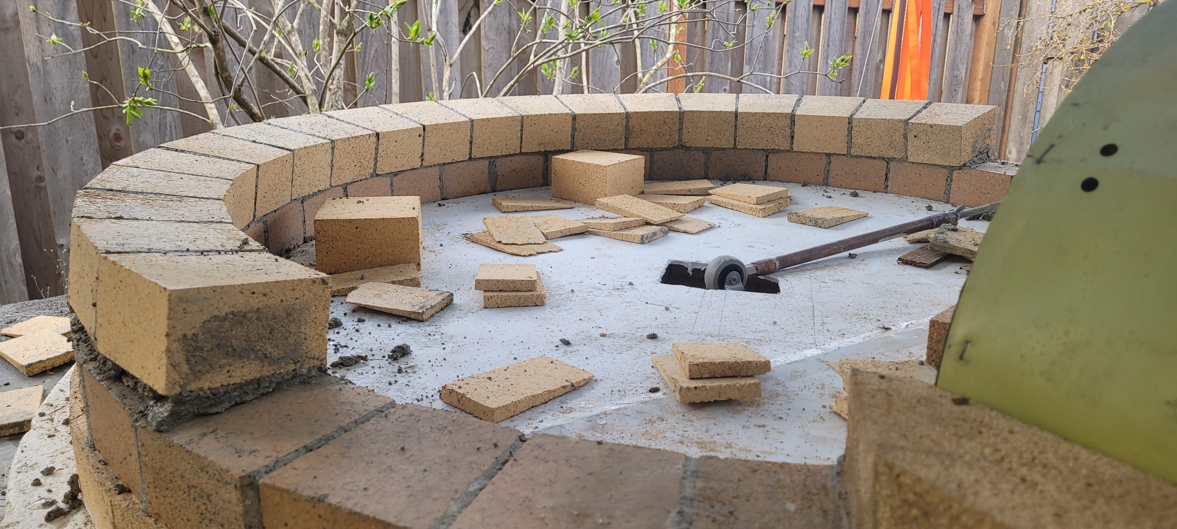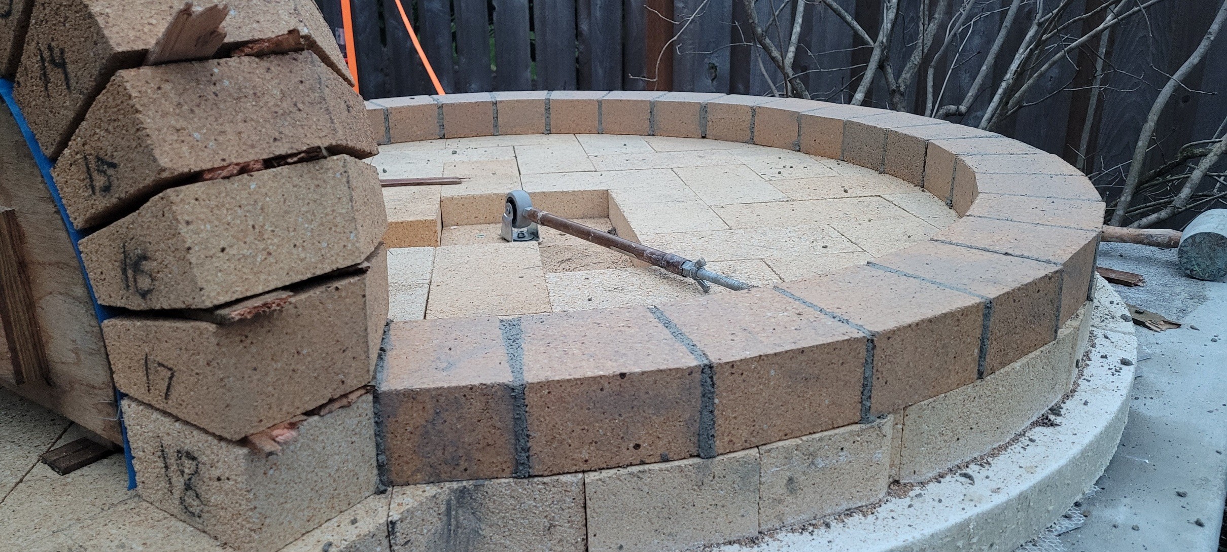 • Hi Pizza Oven Officianados! It's been a minute but I haven't entirely passed this time idlly. Here in Portland, OR we've transitioned from a lingering, cold, wet winter to a record-breaking heat wave! Since my last update a month ago I've put in some work at both extremes of the temperature guage. Currently I am working on the 4th course of bricks in my dome. Things seem to be going pretty well.