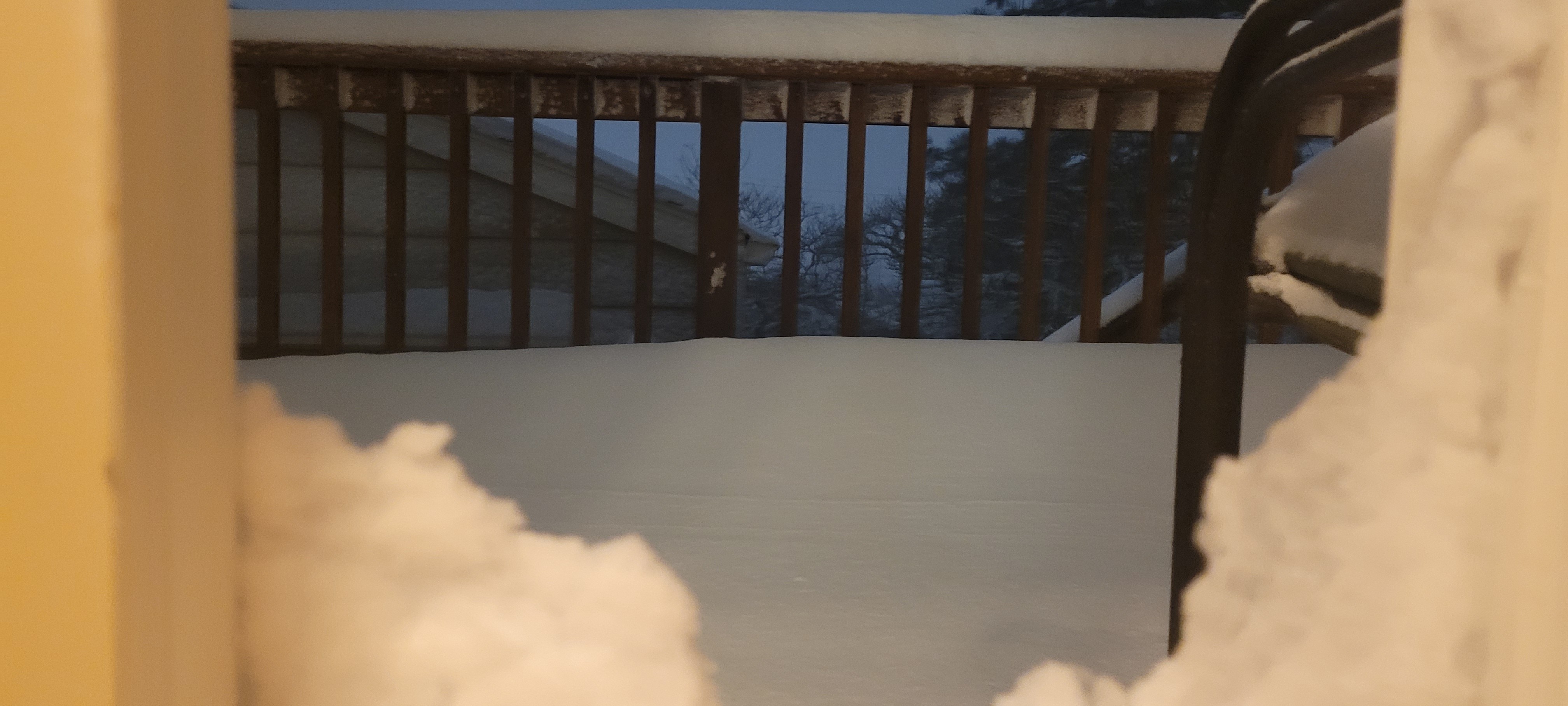 Here's the latest, about 2" of accumulation but the wind is causing some drifts to build up.