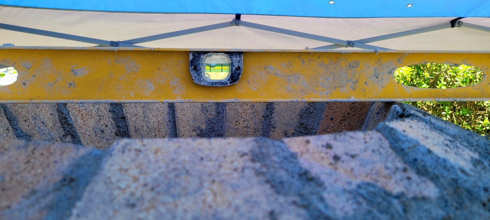 The rest of the lines for the first brick are drawn relative to the end point of lines 1 & 2. On the top of the brick, use the side angle T-Bevel to mark lines 3 and 4 as shown. These converge to the top inside edge, the narrowest width.