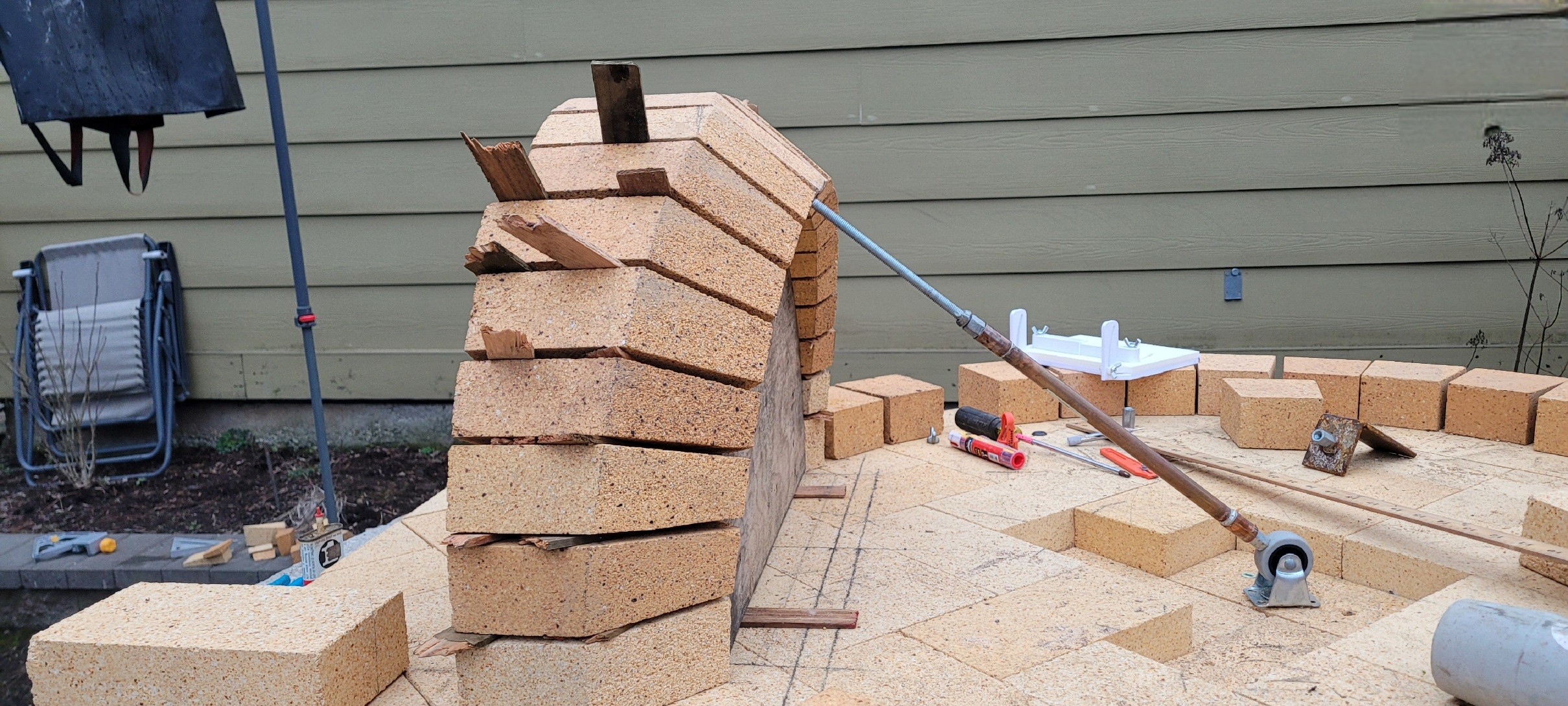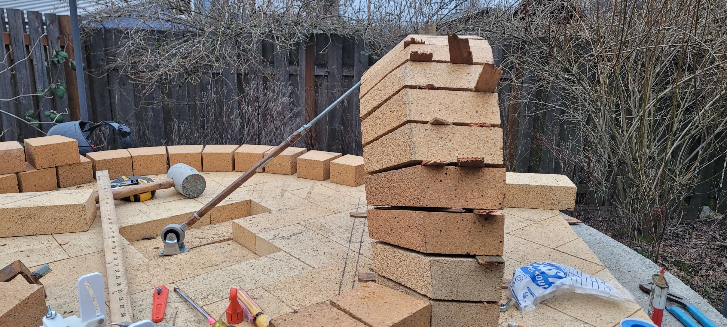 Well this is a little late but as it's my first post of the year, Happy New Year everyone! I was excited to get rolling on the oven but this winter has been unreasonably wet, cold, windy, snowy, and just plain busy! But finally I got a little gap in the weather and workload and was able to get a few hours in on the oven today.