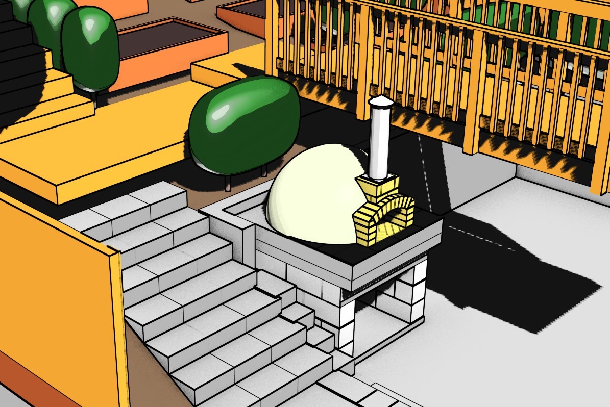 Two 3D sketches with accurate measurements of the oven in the backyard (yes I have a full 3D model of my yard)