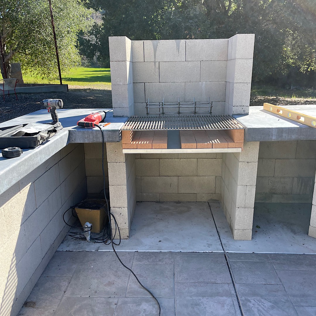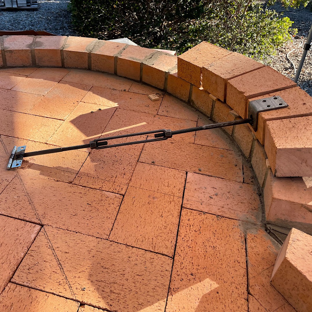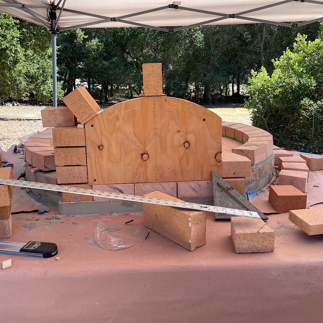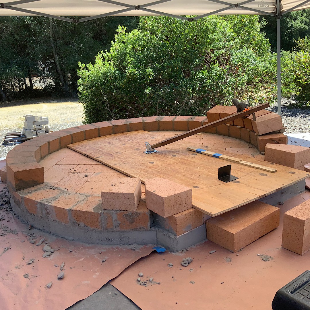 At this stage I do have two questions if anyone has the time. First I have my floor bricks in direct contact to the foam insulation. I was going to pull them up and put down a layer of clay or sand but the bed is very level. Do I really need to do that? Second does anyone have a formula for calculating the compound angle for the side cut of the bricks. I can see as the courses get higher the verticale grout joint will start to become triangular instead of parallel.