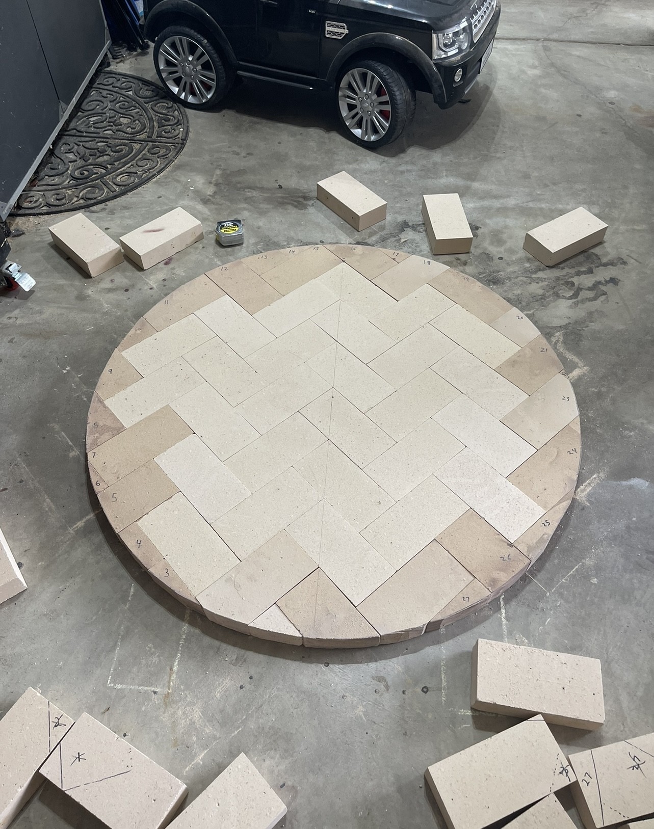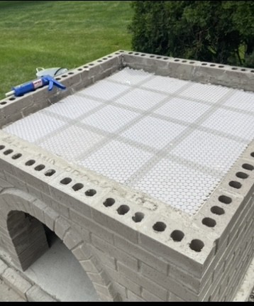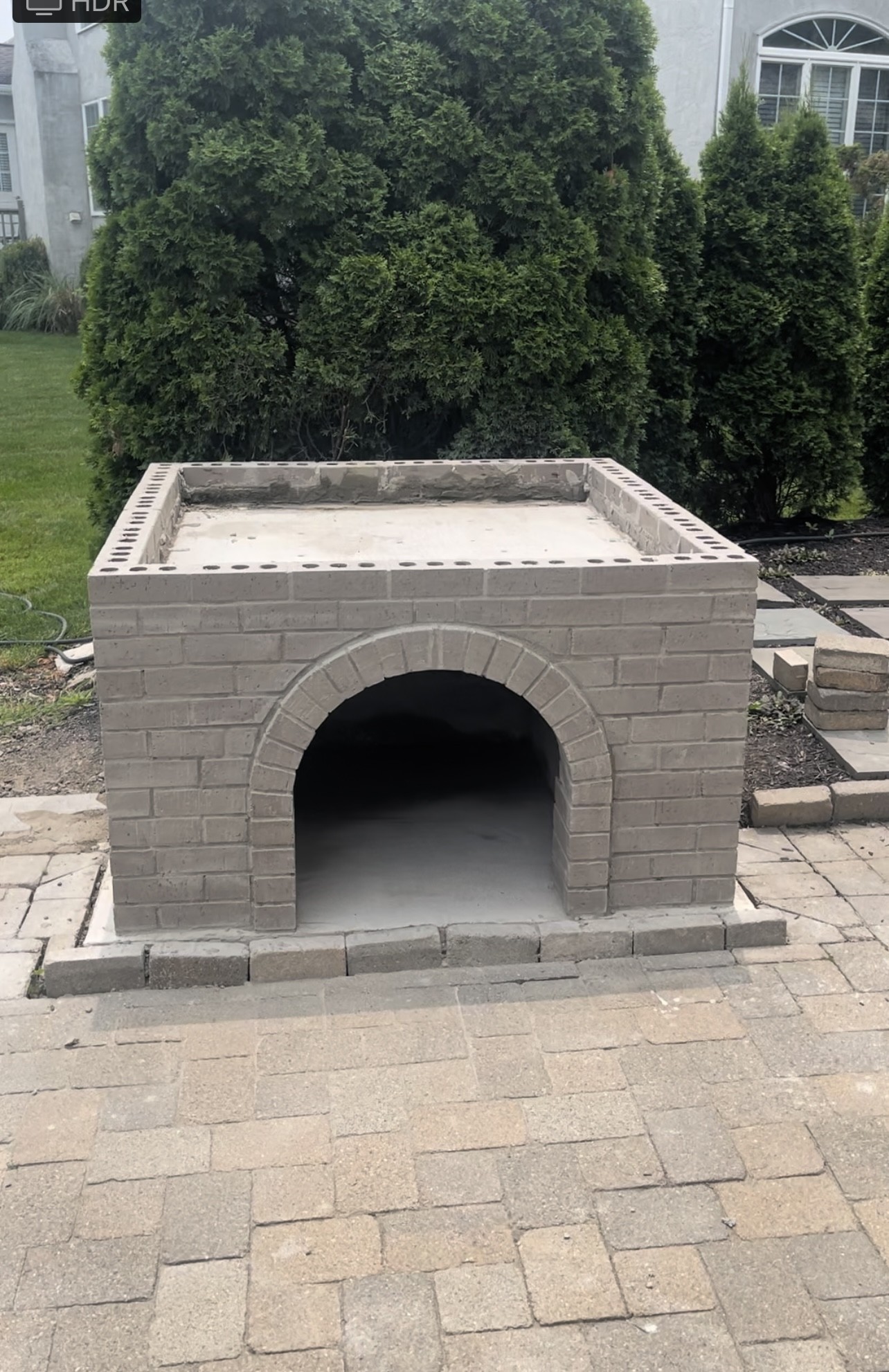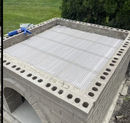 Finally finished with the outer bricks. Here’s how it looks today. I poured an extra beam of concrete behind the arch and filled the back gap with concrete as well. The sides maintain a 1/2” gap. I’ve got some mosaic tiles to put upside down on top and my vermiculite just arrived today. Gonna fill this thing with 5:1 vermicrete and then give it a week before starting on the dome.