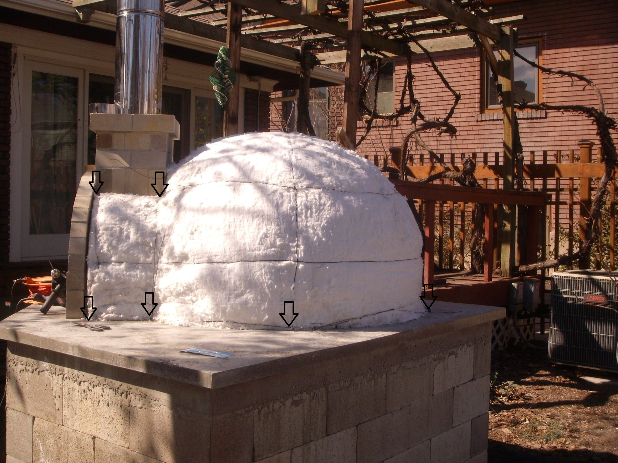 You can start curing with charcoal briquettes, gets you about 200 F without flame impingement and you can do a dutch oven or cast oven meal on the coals as a bonus. When you start wood, very slow go. One extra piece of wood will spike the temp very easily. This is where we see many builder get impatient going too fast too hot and crack their ovens. The turtle wins the race in curing an oven. Also, any thoughts of installing a vent at the apex of the dome since you sealed the bottom in with AL gutter foil it will also keep water that gets in from getting out. By install a vent in the apex, water vapor can escape. When water sublimates from a liquid to vapor the volume increases by 1500 X with the potential of pressurizing the dome and possible cracking. Vents are cheap and available at any auto store for under 10 bucks. Both Gulf and I use them in our builds. We used a threaded pvc bushing embedded in the stucco with the opening to the depth of the blanket.