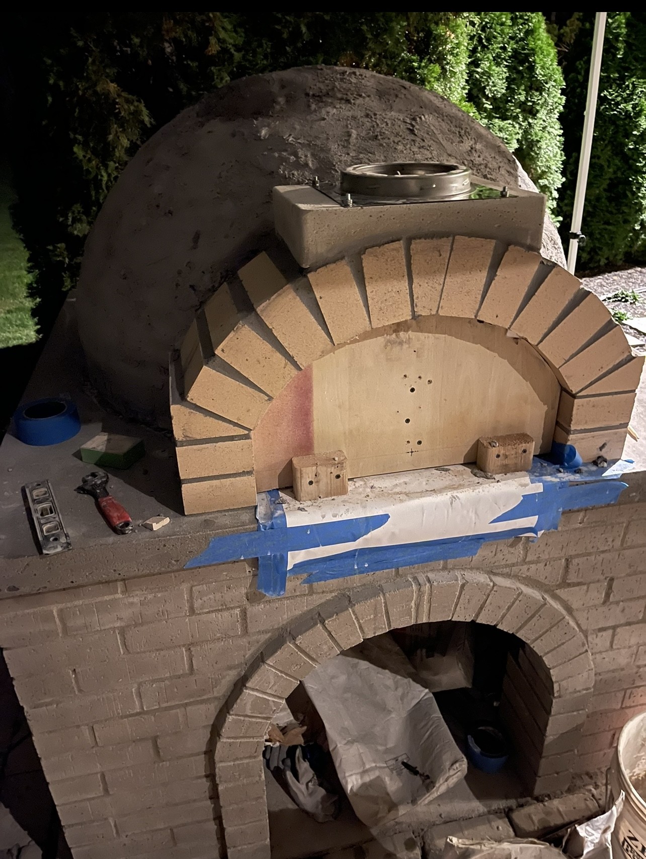 This is great, thanks David. I’ll go ahead and use the fire blanket without the chicken wire. I feel like the dome is rough enough that the blanket will sort of stick to it like velcro. Then I’ll just render right over it. Just put the flue gallery on tonight. Really excited to start the curing process in about a week or so!