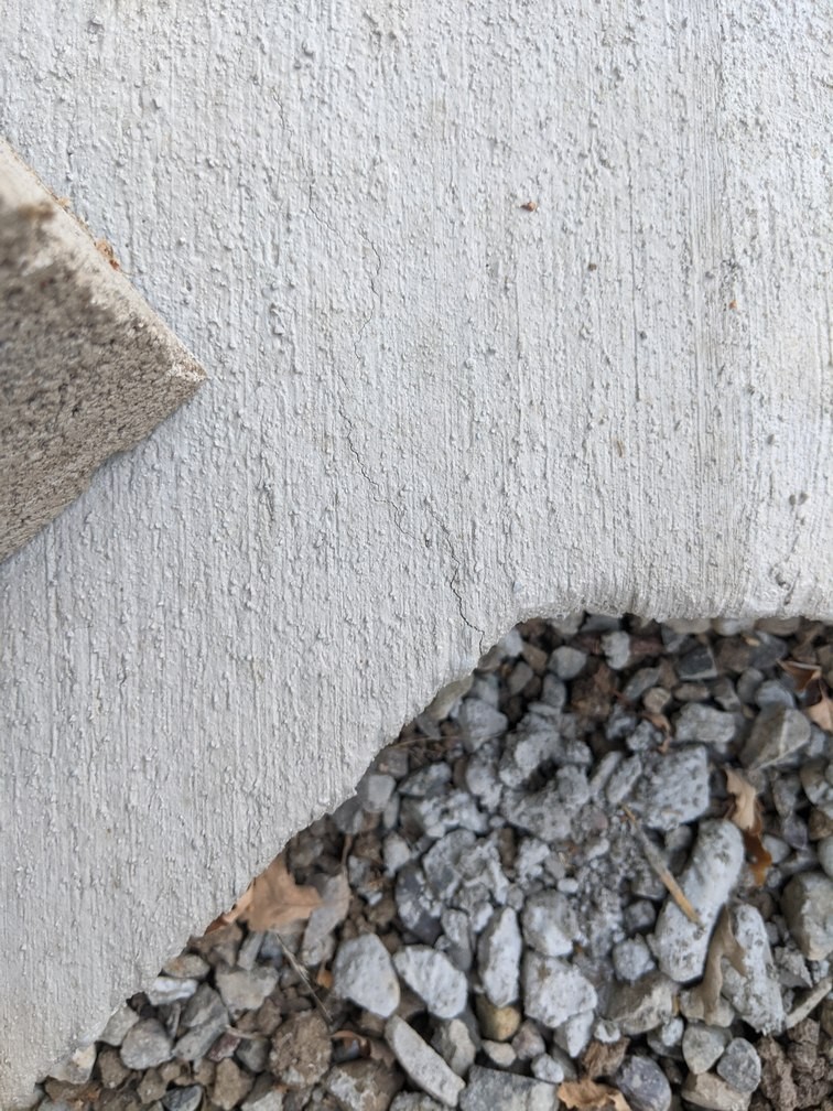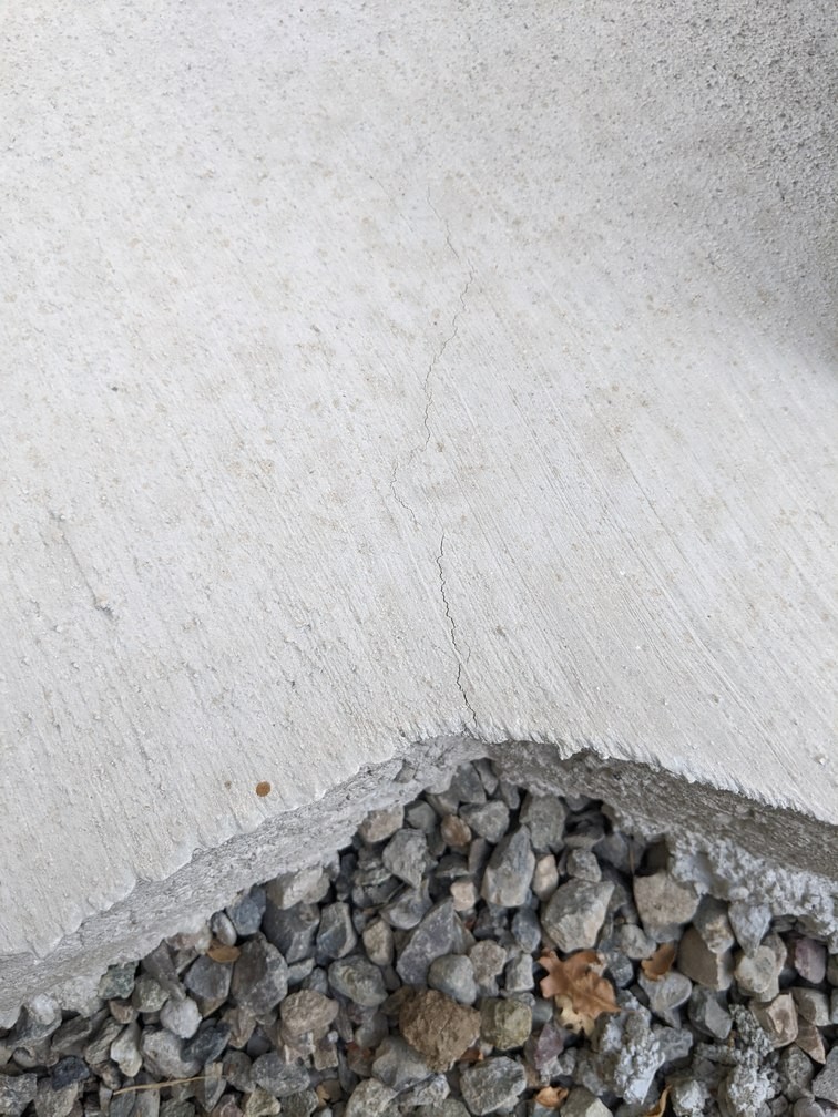 Back from vacation, and inspecting the slab work. Some hairline cracks have appeared stemming from the obtuse angles--how worried should I be? I'm most concerned about the first attached picture, in the back left corner, since it seems both wider, and is traveling toward the part of the slab where the oven stand will be. How worried should I be, and is there anything I can do about it? I have a load of concrete blocks, rebar and bagged concrete scheduled to be delivered Monday...