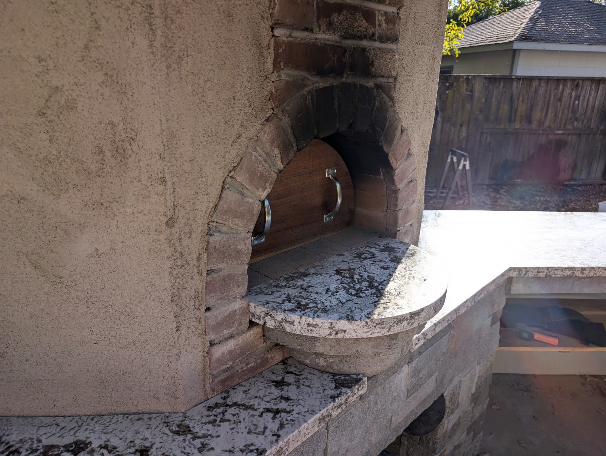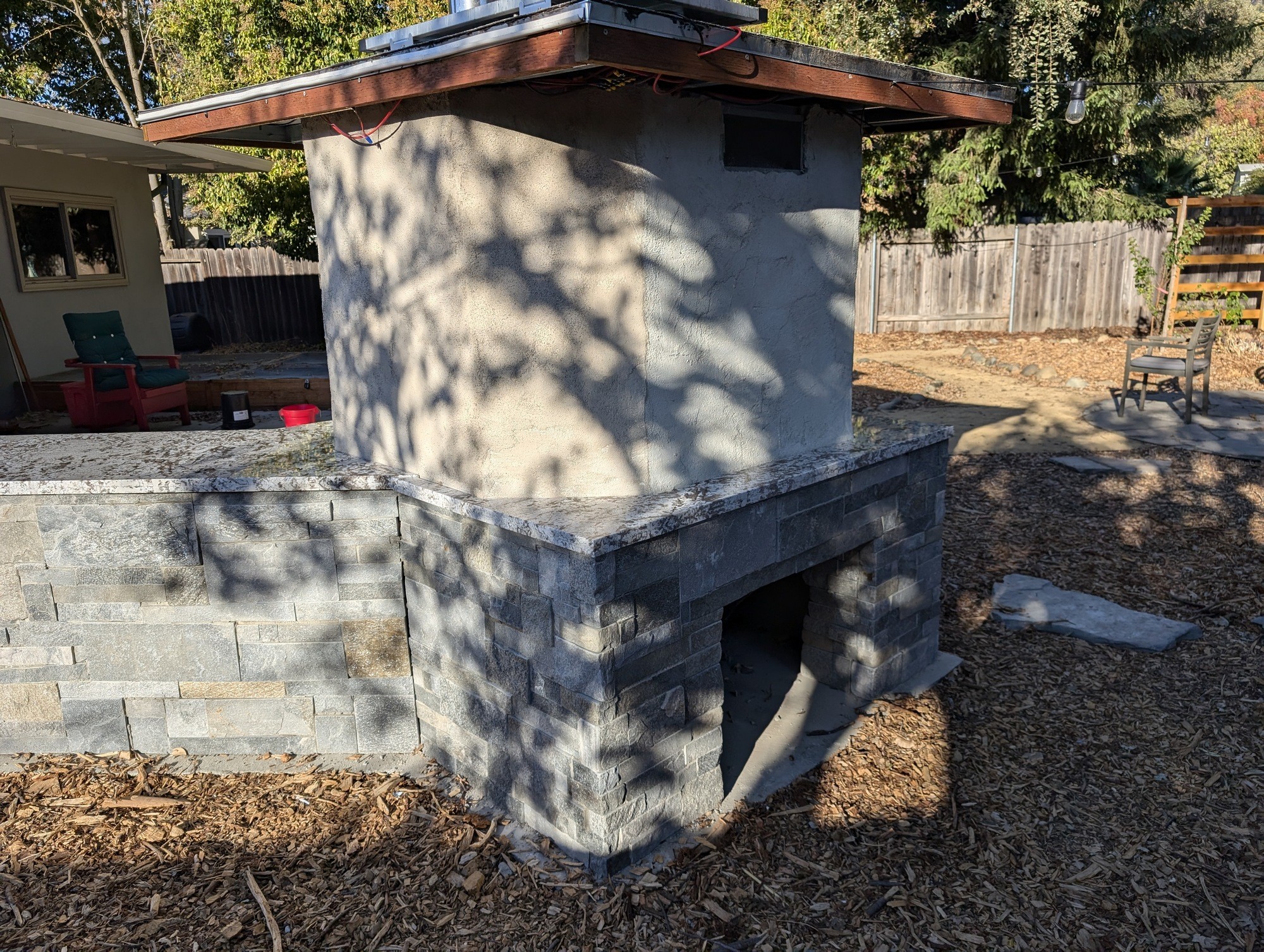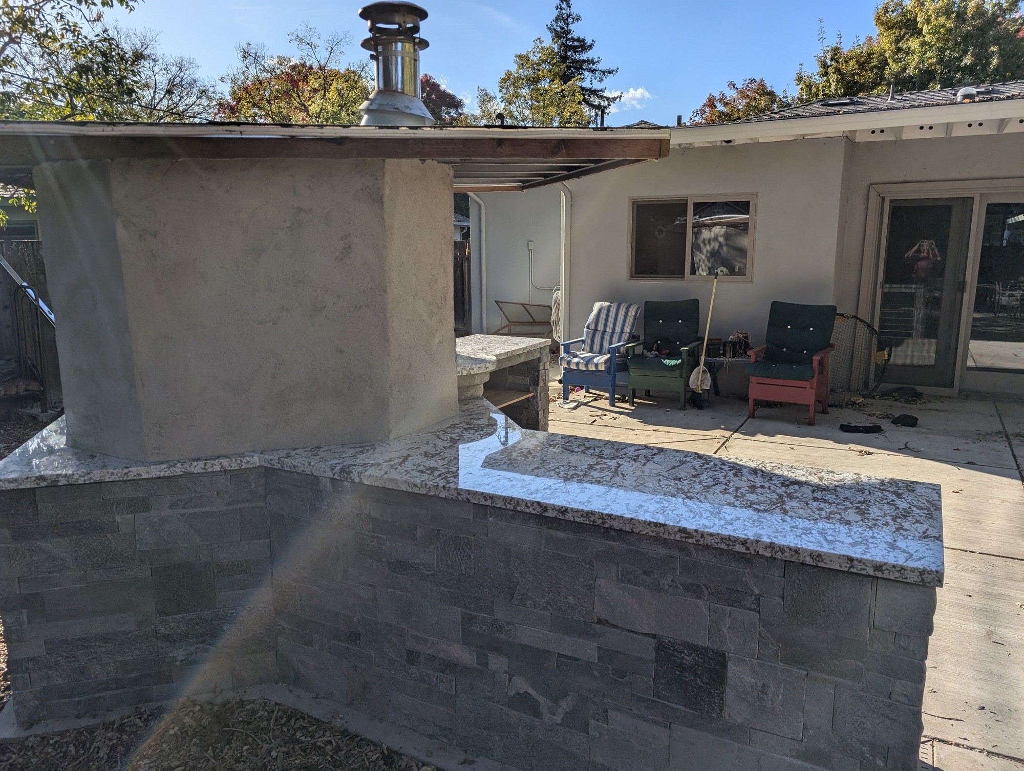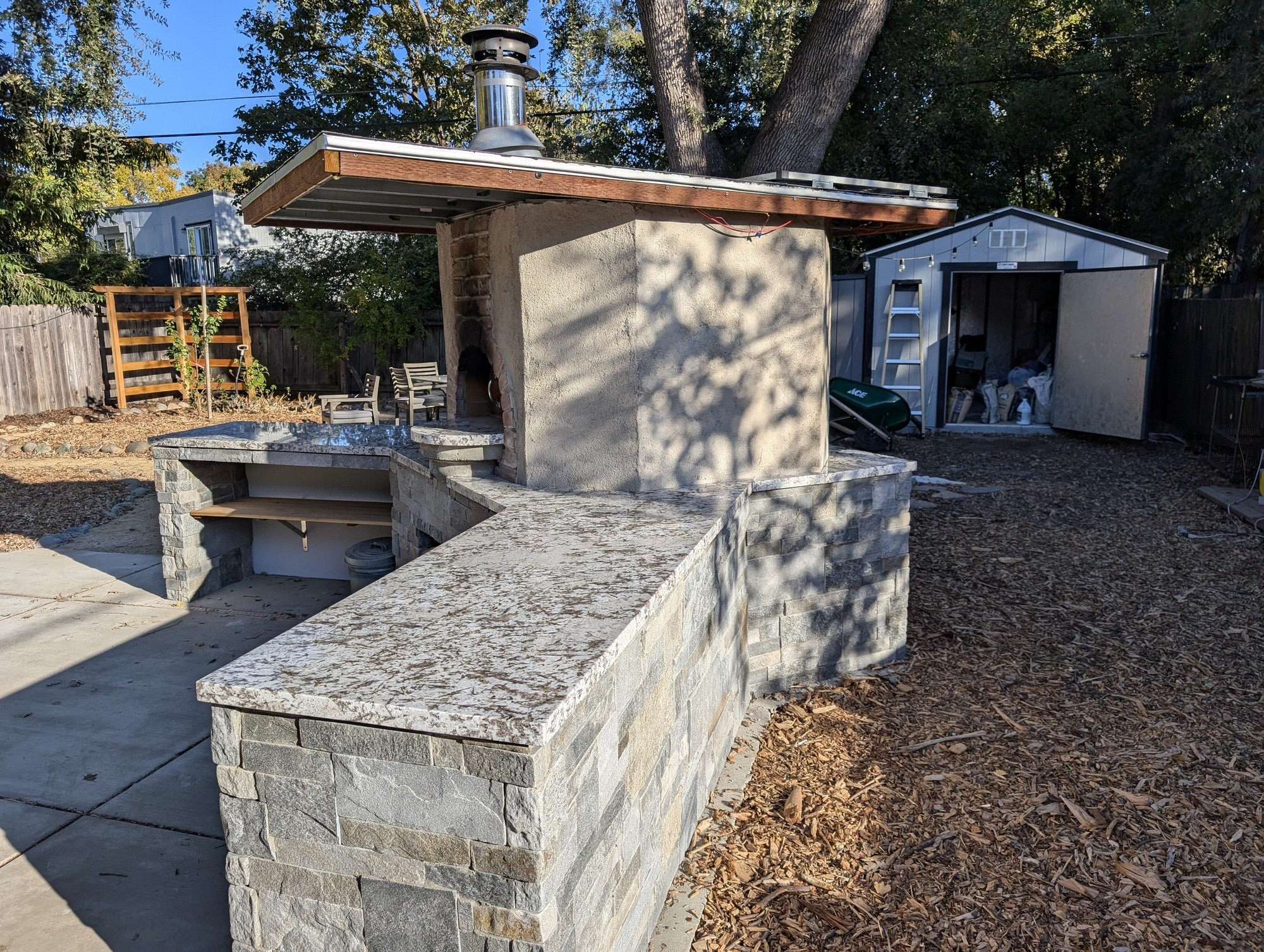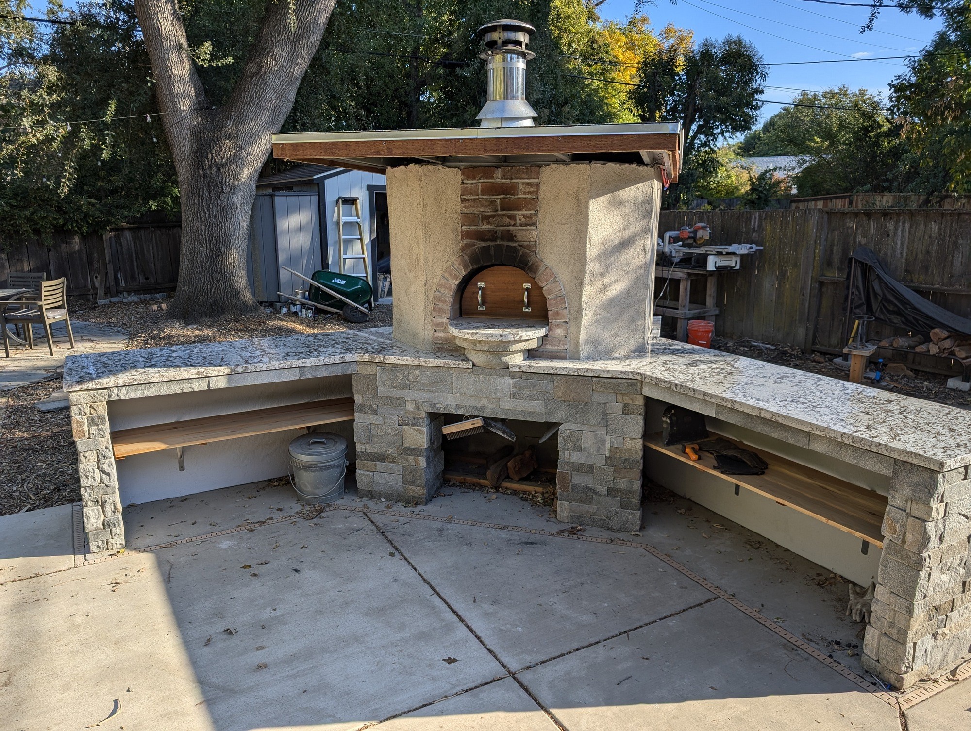 I went ahead and stuck on the last couple veneer stones once the countertops were in place, and now except for a bit more grouting (and at some point soffits in the roof, the aesthetic components are done. Only took about a year from when I got the roof on