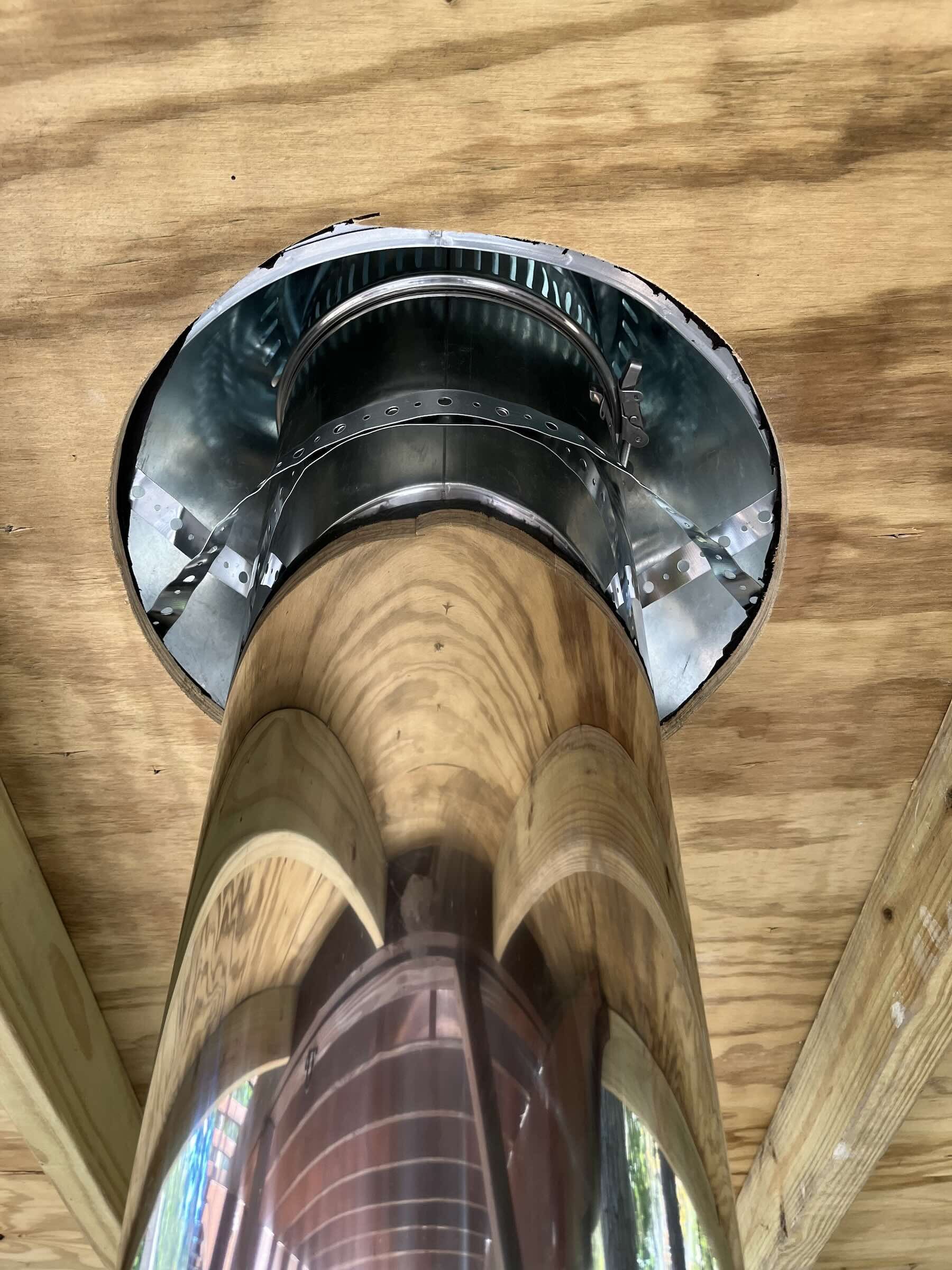 I also added some straps to hold the chimney in place and reduce possible torque of the wind being transmitted to the anchor plate and the chimney transition below it.
