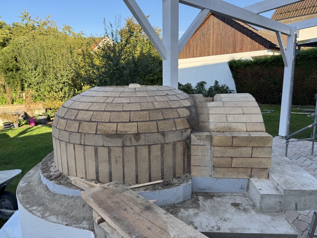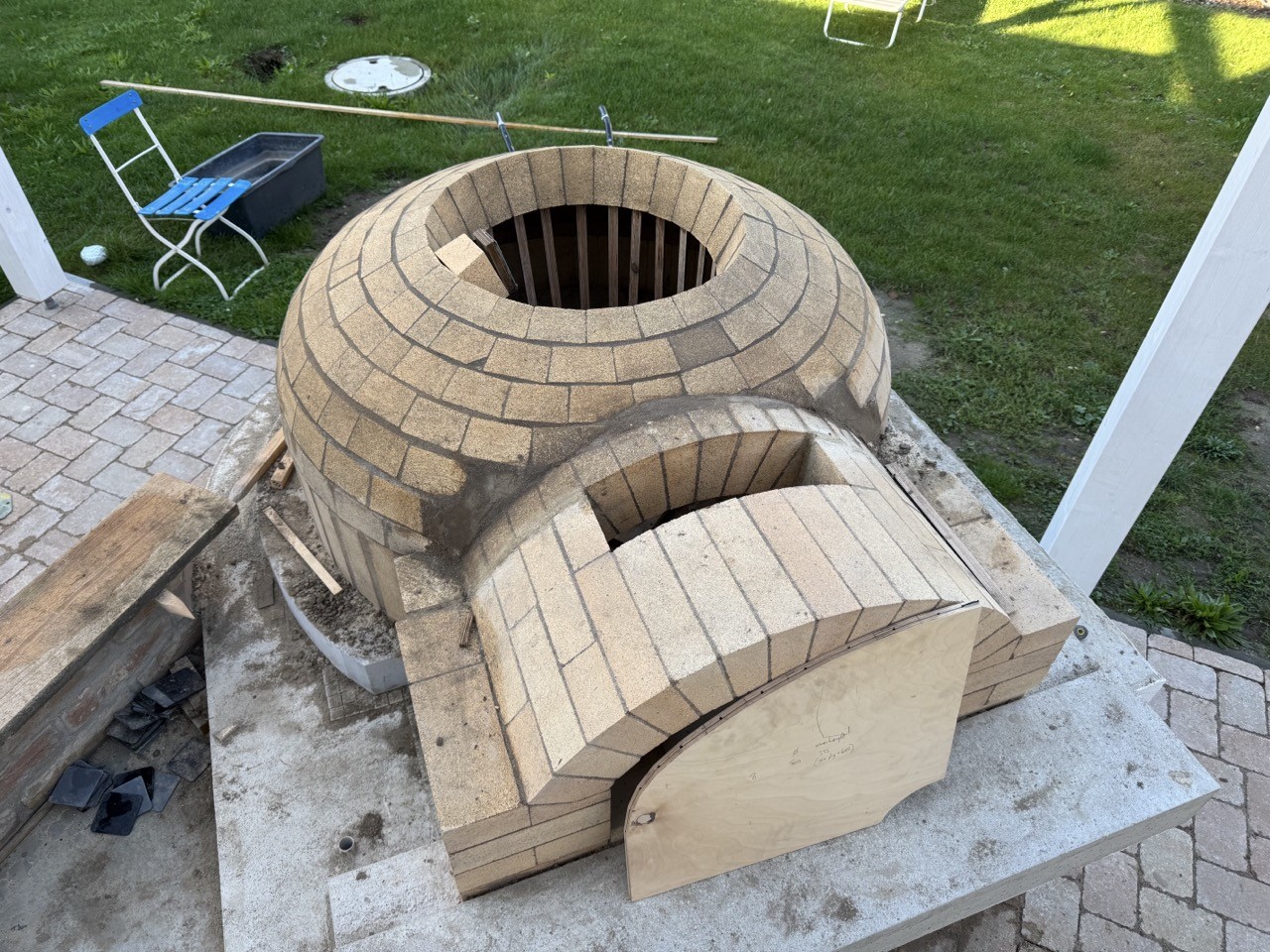 My designed base allowed for 100mm ceramic fibre blanket, covered by 150mm vermicrete. At the sides I will need to add that so the sides of the dome meet the sides of the base, but I can go thinner on top with the vermicrete. If I got you correctly, I’ll plan on adding 4 x 35mm layers of vermicrete at a time, a week apart to allow each layer to dry sufficiently before adding the next. Our fist frost is possible from mid October, but we can still have warm days. Weather lotto, will just have to be flexible.