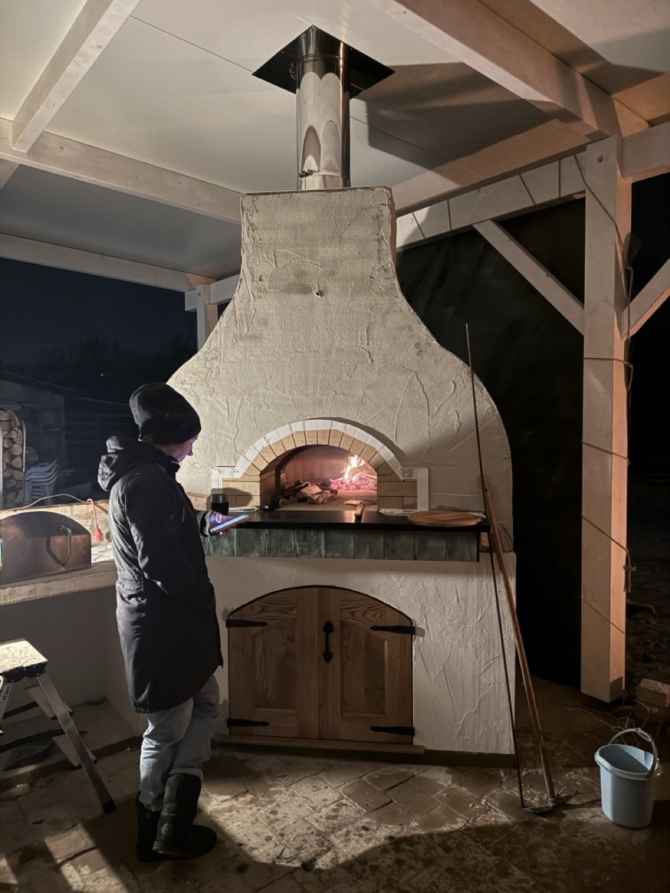 I‘m only weighing up using the Rockwool as a fill for the door. But I might use it on top of the perlite in the chimney as the last layer under the base plate that will sit on top. Given I plan to put the flue up tomorrow, and i have Rockwool on hand now, out of necessity it might get used. Then I‘ll put ceramic fibre in the door when it arrives. I wanted this done before I start the fires so I can use the door over night to preserve heat throughout the week of fires. I think it will help with expelling water. It’s getting cold now, with our first snow yesterday, and -3C, getting cool to so want to keep the oven warm. I‘ll check out the TC of each product to compare them.