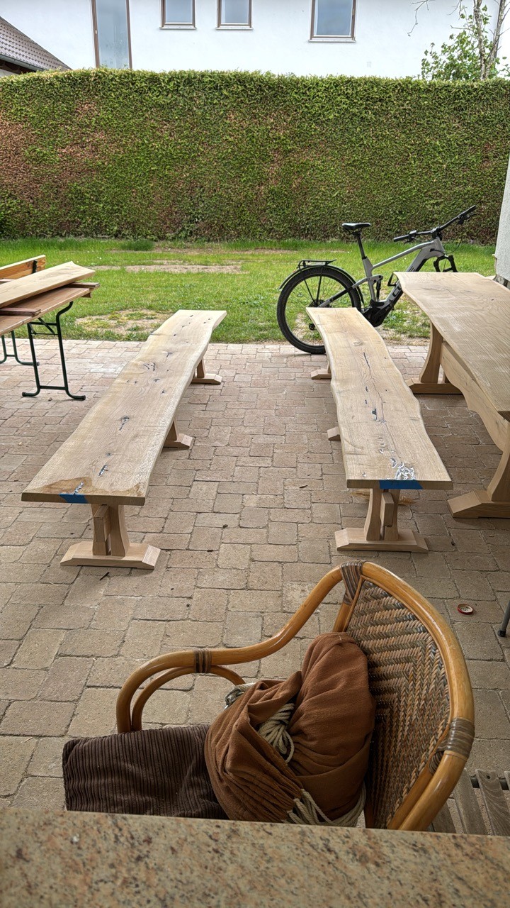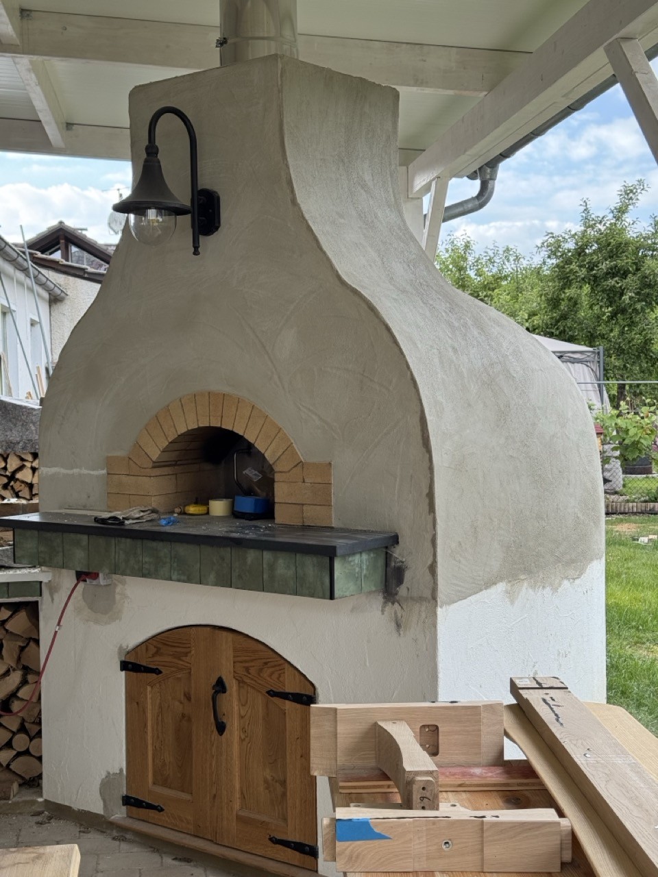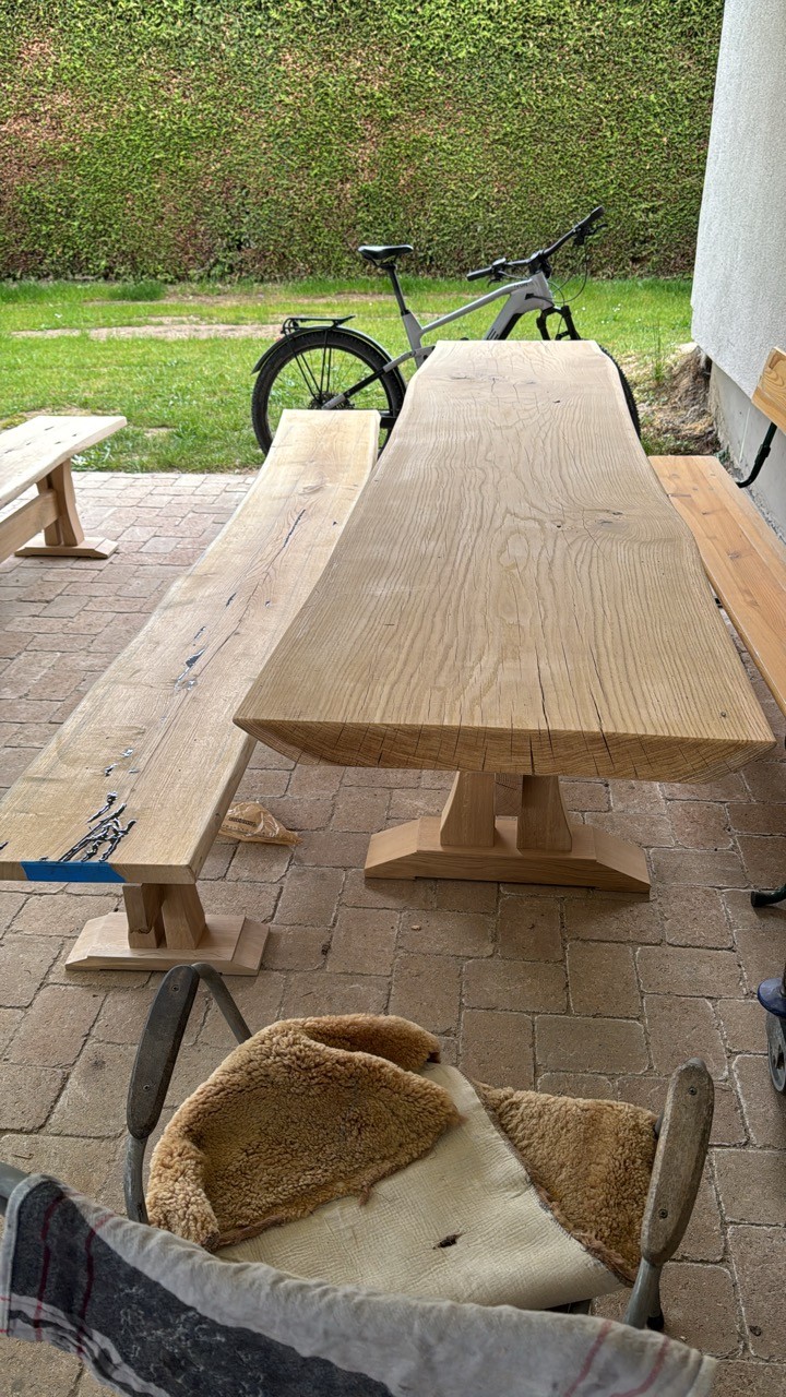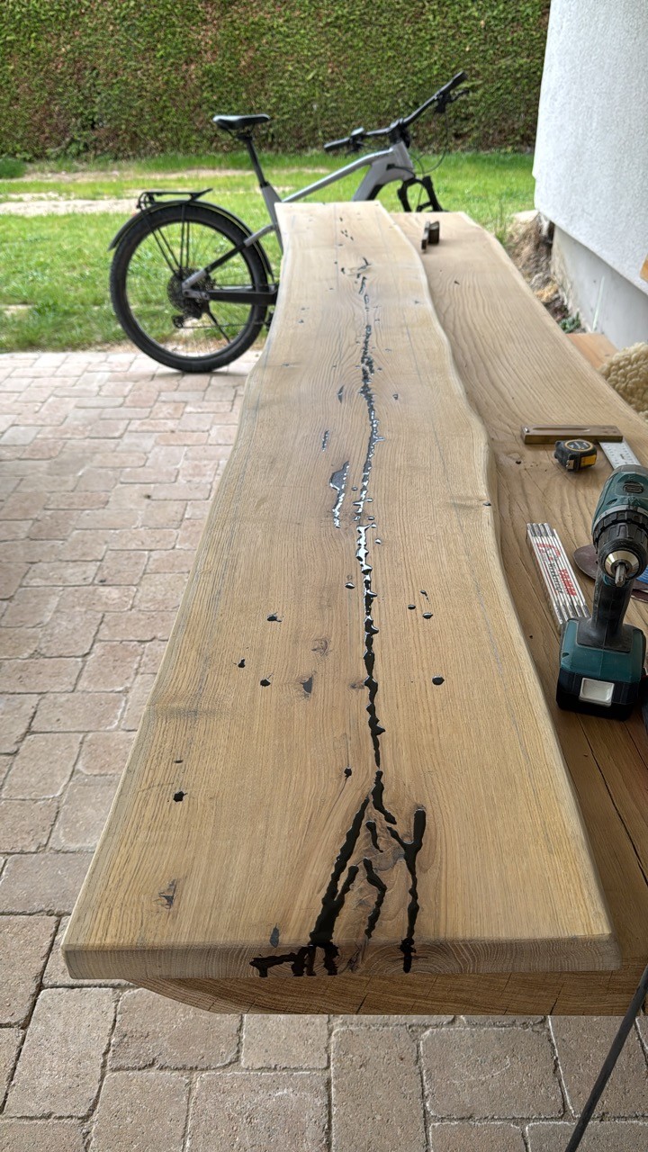Summer is getting hot here, and I‘ve been busy digging foundations for the new terrace on the side of the house. I also have been working on finishing the oak table and benches for the pizza oven. Filled the cracks and blemishes with black epoxy resin. Sanded and oiled, was a time consuming process but it‘s finally done and very happy with the outcome.
