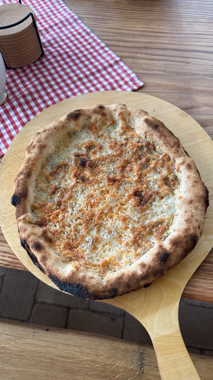 - Maurizio - Mozarella, parmigiano regiano, rosemary, sea salt, ground black pepper, dash of olive oil.
