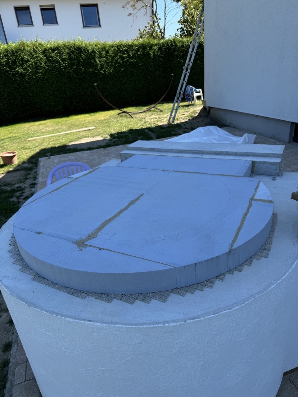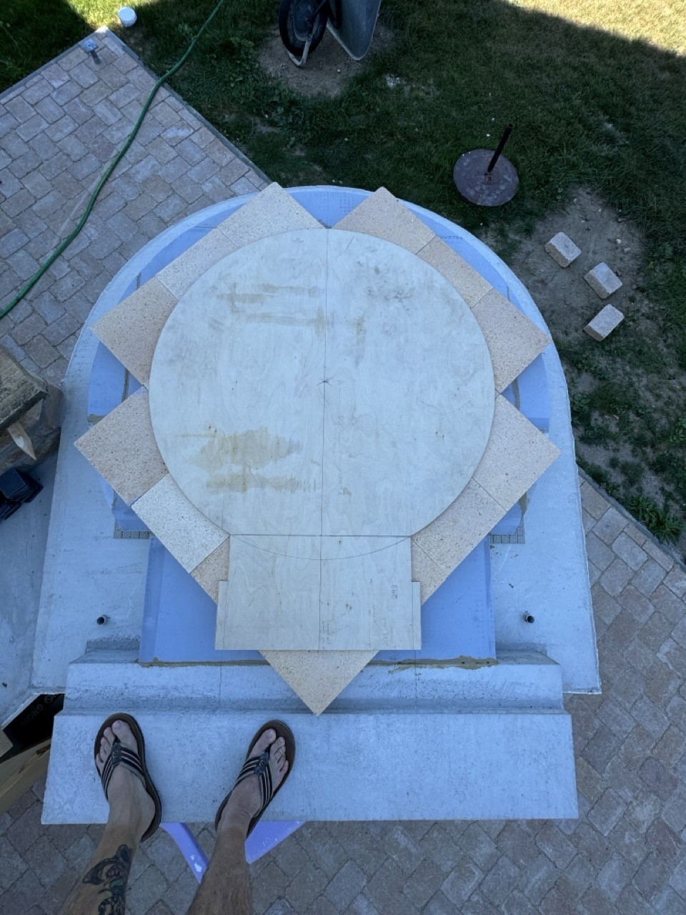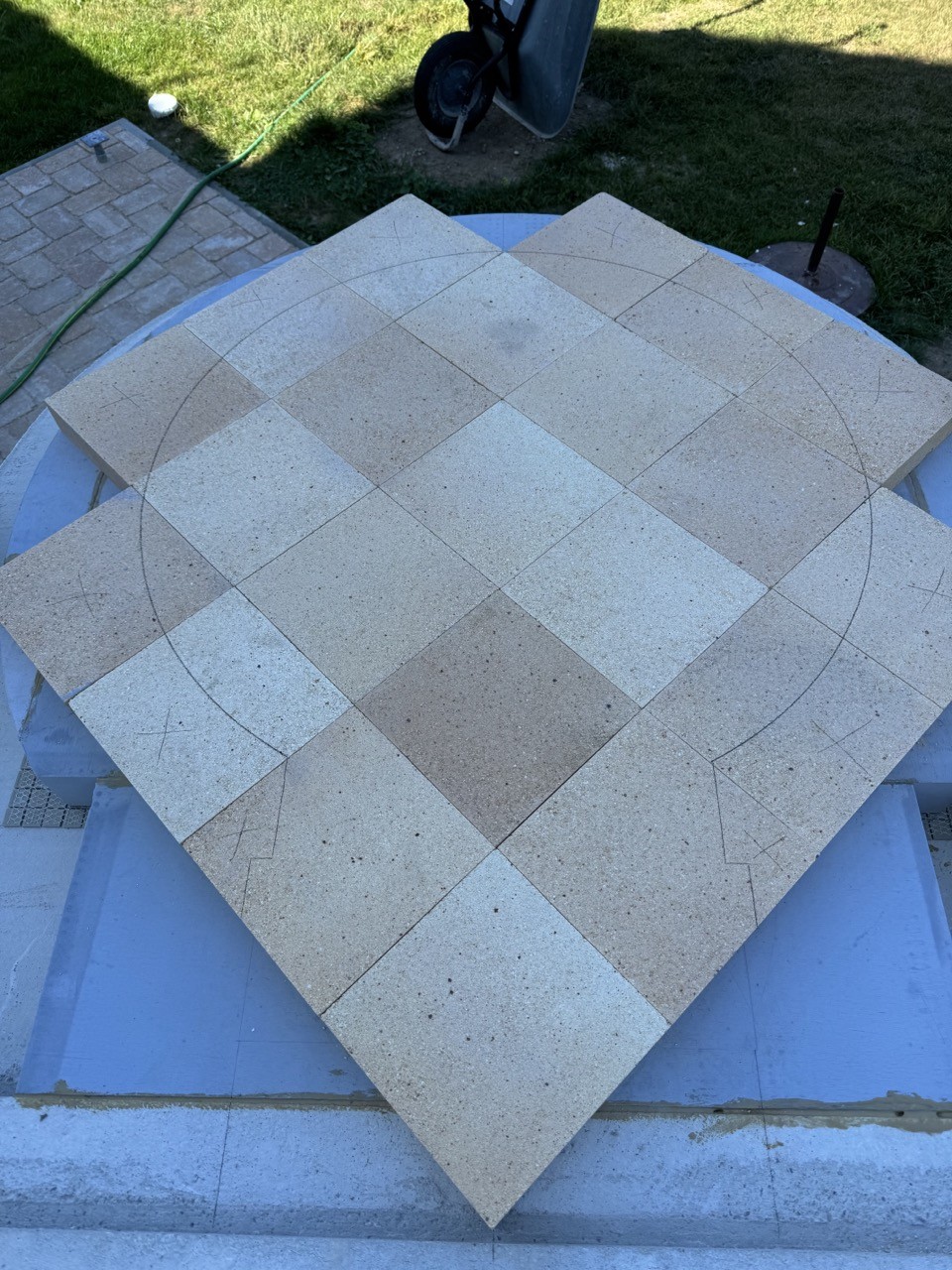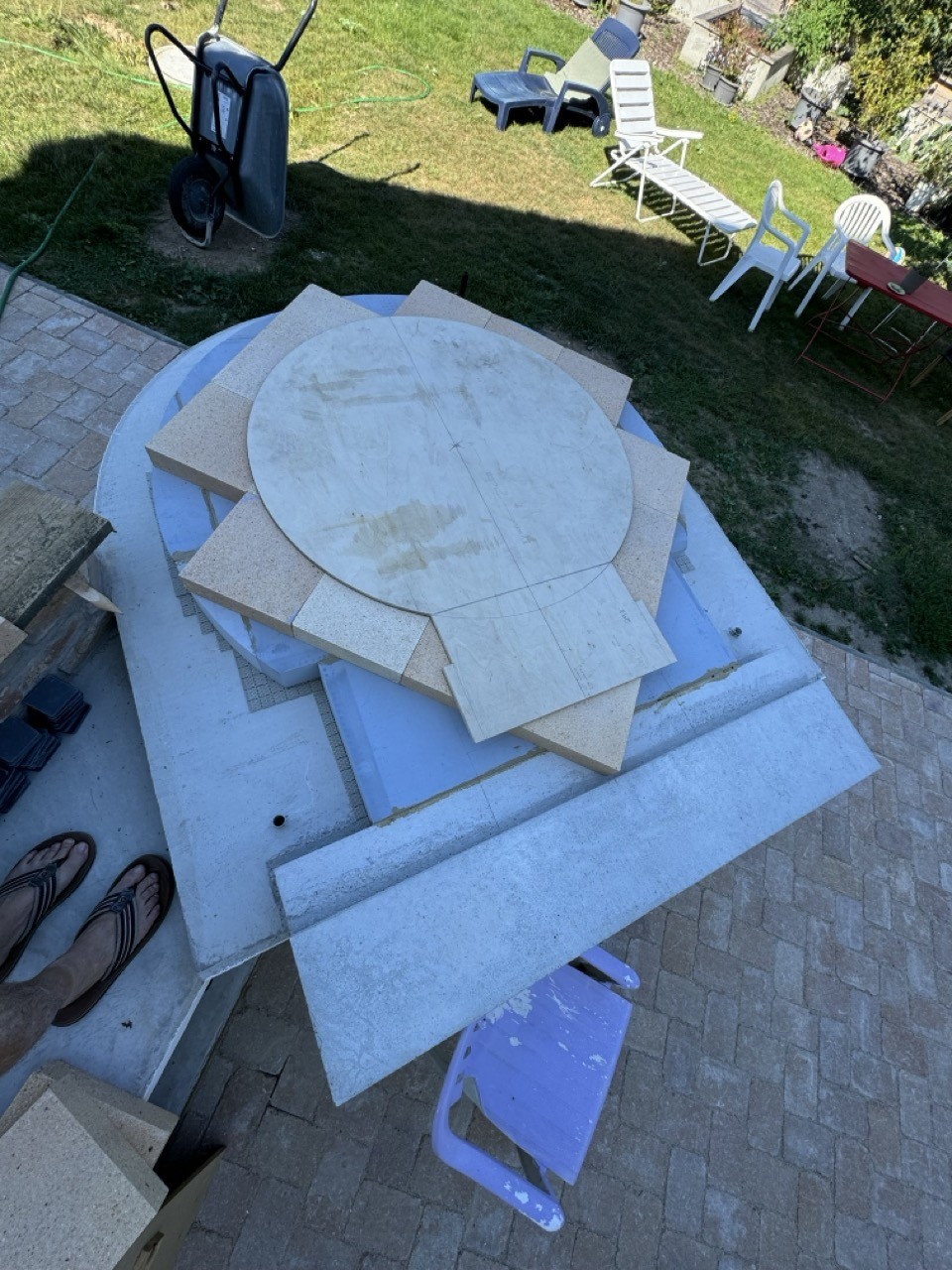 It’s been a really wet start to summer this year in Bavaria. When it rains it really pours, and it’s been really unpredictable. It’s been a bit hard getting a run at rendering oven stand, but today I finally managed to finish it. I’m going for a rustic theme with the finish, so visible washed out trowel marks are visible. I added a smooth skirting around the bottom that I will paint to match the okra color of the pavers.