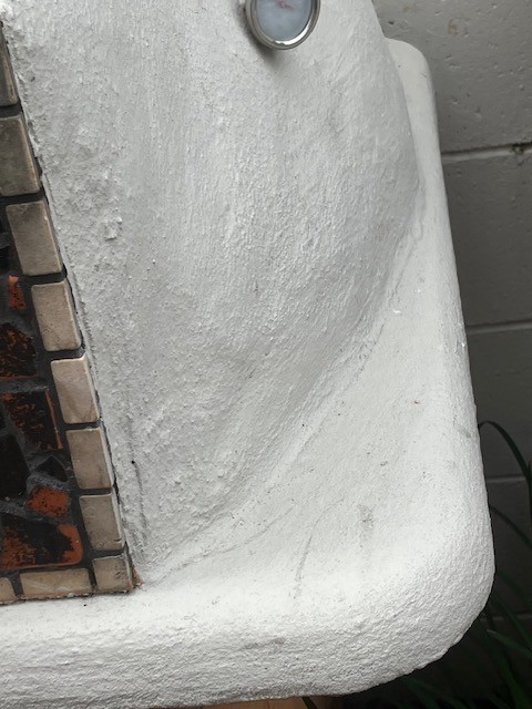 On the outside I slope the corners of the supporting slab away from the outer dome shell to prevent rain accumulating at that point. This is easy to do when I pre-cast the supporting slab. I only have to tilt each corner of the mould upwards before laying up. This position can often be another entry point for water and if a crack develops there it should be sealed up.