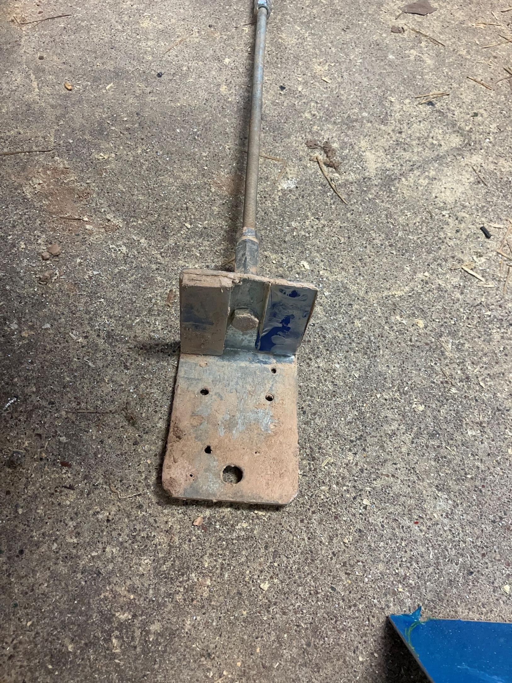 I spent a long time trying to find the right indispensible tool design and didn't really find anything on the forum. Too many designs included welding. I ended up bolting an angle to a threaded rod with locknuts and coupling nuts. These I connected to the plywood floor form with another coupling nut, a caribiner, and a loop screwed to the plywood. In retrospect I did not like this design. Try to make a fixed length one without a break instead.