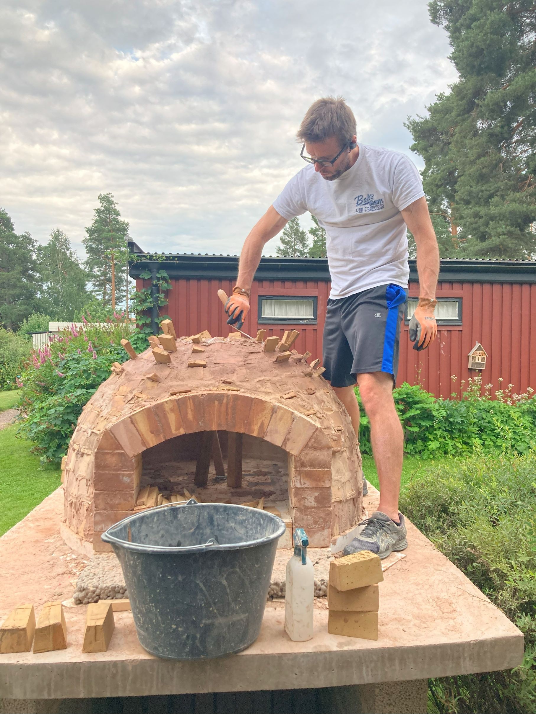Everything seemed to be more expensive here compared to the other builds I read about (primarily american). Bricks were the worst. Australians I feel your pain. Firebricks, when ordered online, cost about $4.50 each. Or could go to a hardware store and buy them in person for $8 each. Needless to say I spent a large amount of the winter and spring looking for 'used' or leftover firebricks on facebook marketplace or blocket (rough equivalent to craigslist here). The standard brick dimension is 230x114x64.