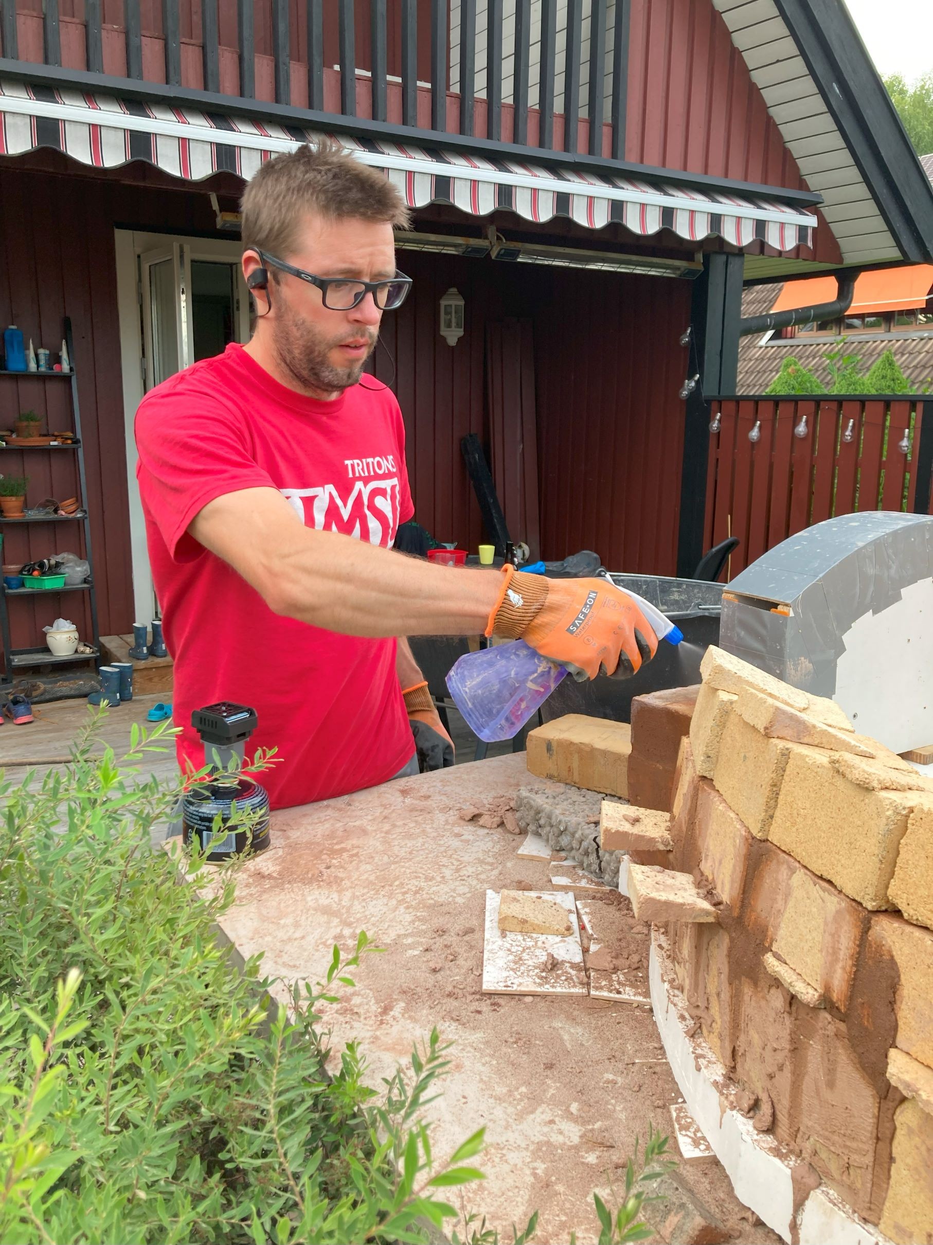 Now tools in Sweden are incredibly expensive. Trying to find a tile/brick saw took a lot of effort. Your standard sliding wet saw that everyone buys for $200 dollars at harbor freight? About $1500 here. I looked into tile saws but there are two options. Your standard small blade table tile saw which can be found for about $40 (requiring at least 2 cuts to get through the brick). And then tile saws with larger blades starting at $400. There is quite a substantial price jump just for the larger blade. Then I tried to just find a masonry blade for a cheap miter saw. Unable to find a masonry blade small enough. And to get a miter saw with a larger blade was also prohibitively expensive. Eventually I bought a metal chop saw (just up and down straight cuts, no angling options) with a big blade for $150 and slapped a masonry blade on there. Dear god this saw was loud. And yes, so much dust. Many double shower days because of all the dust.
