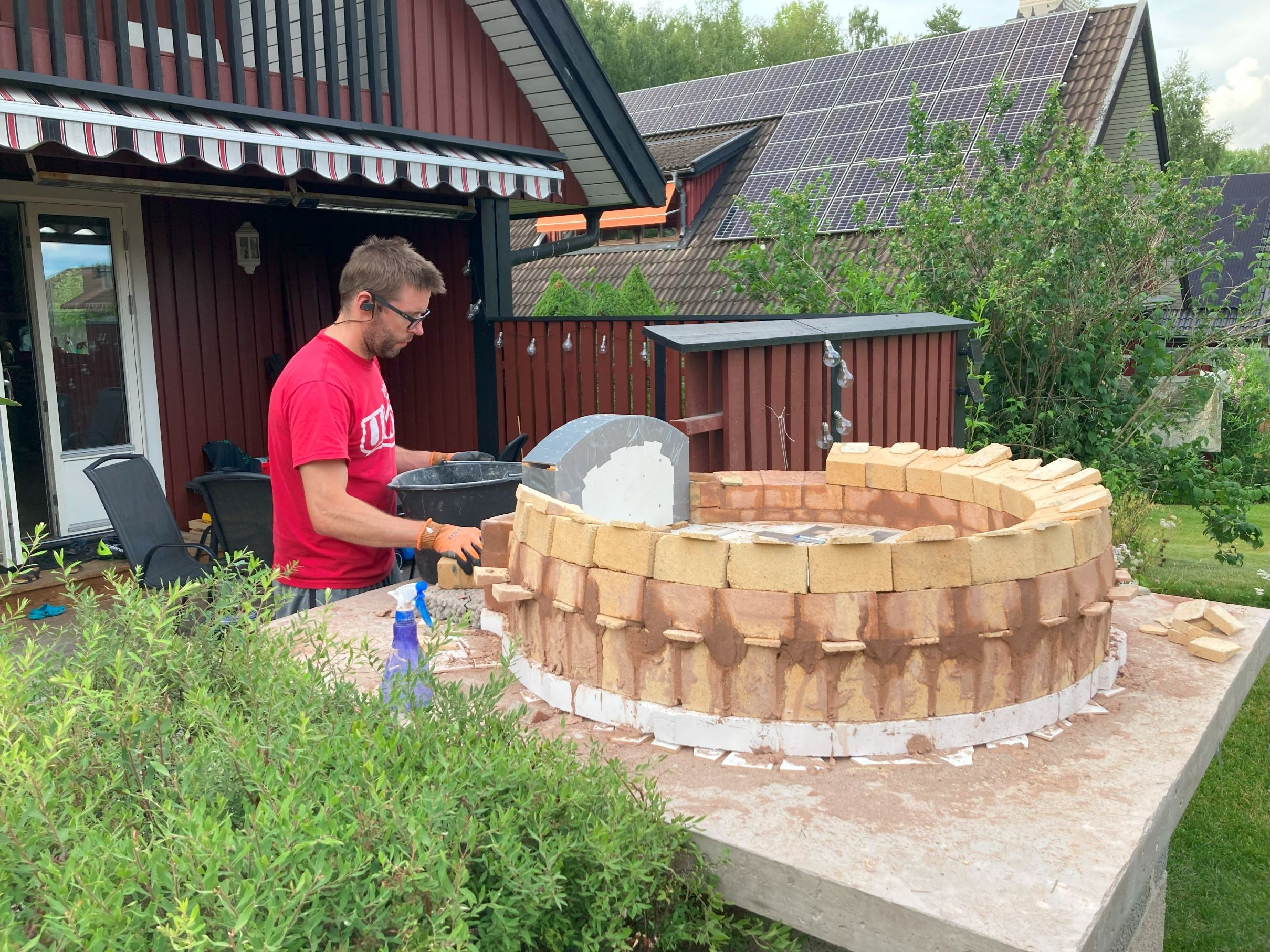 I used the homebrew for mortar for the dome. 3-1-1-1. I had to really water it down so that it wouldn't suck into the (soaked) bricks and dry out immediately. Fireclay was hard to source online without incredibly high shipping rates. Ended up buying some from some random small company that installs fireplaces. I found one single store that carried the lime (Weber Släkt Murkalk e).