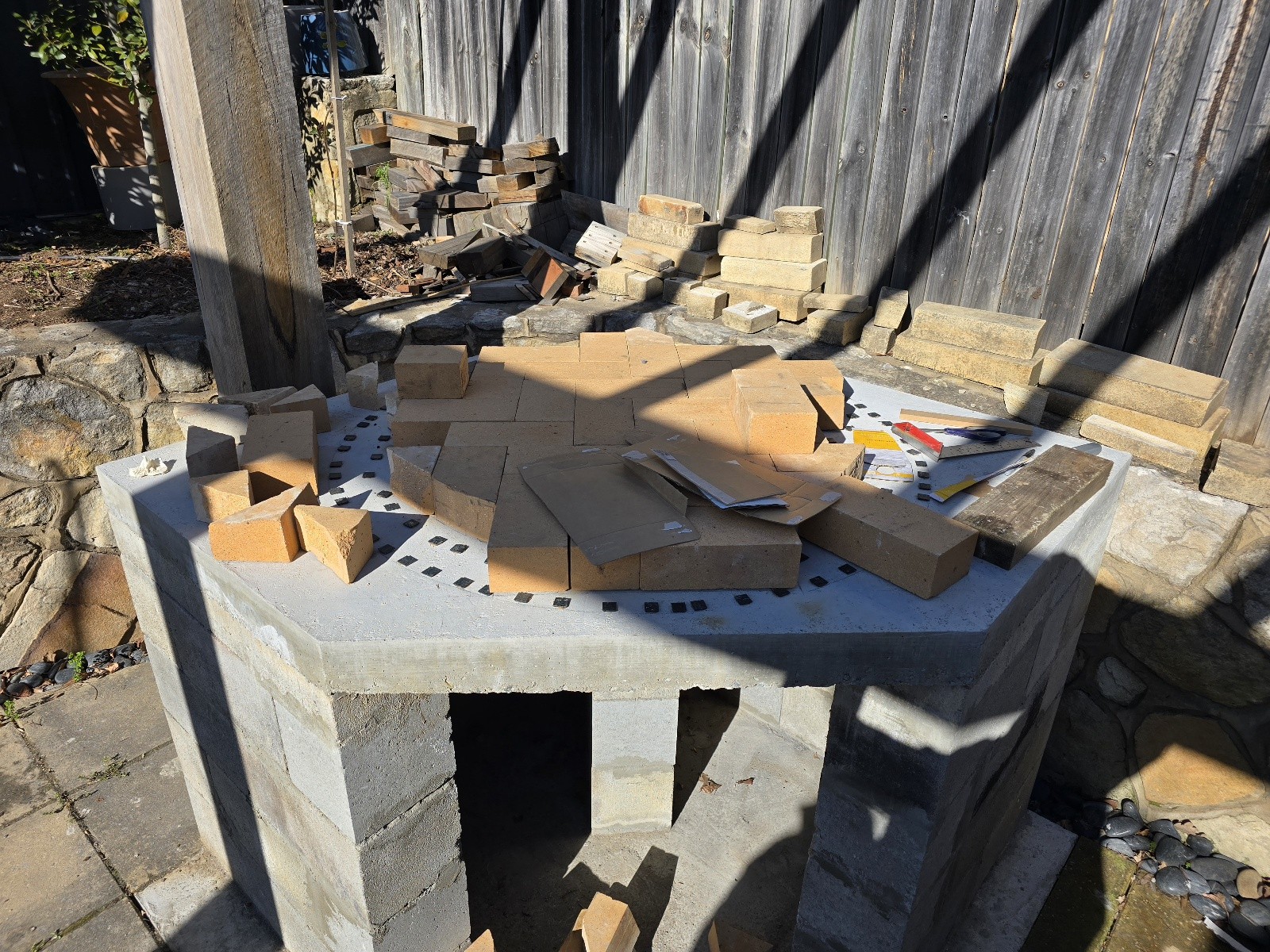 My project is an outdoor kitchen with a pizza oven and a fireplace BBQ. For now I'm going to focus on completing the pizza oven.