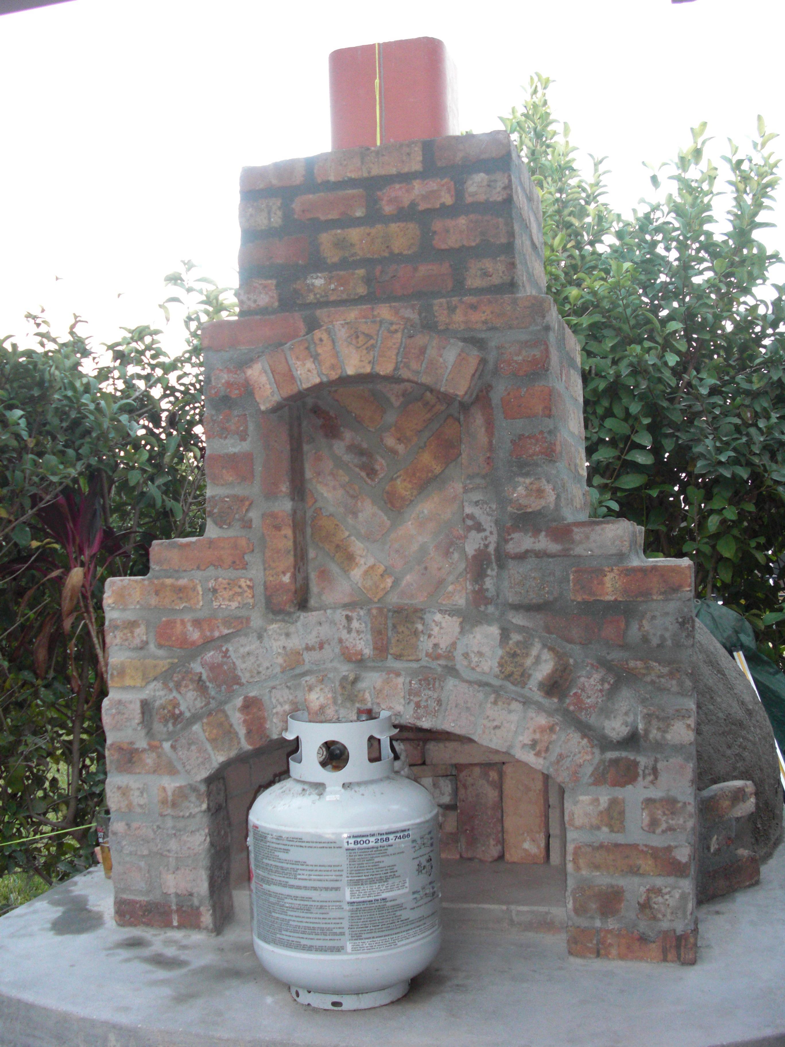 I spent the entire weekend sun up to sun down working on the oven. Friday I started to fire cure the oven with the propane and turkey fryer burner. It worked out perfectly. I was able to keep a flame going constantly until Saturday night. It steamed a small amount at first but then just started drying out. No cracks appeared anywhere except a few small shrinkage cracks in the added thermal mass I added on the top but they were there while it was curing, they just got a little bigger but then closed up after the steam went away. I wrapped the oven with the insulation I bought. I used Thermal Dynamics Cerablanket, 1" thick. 2 rolls gave me 3 full inches around the entire dome. The oven stayed at the desired temp all night, Saturday I opened it up a bit and got it to 350f very quickly. It was so simple, I didn't mess with it at all and just checked the temp now and then. Saturday night the bricks were dry and the mortar was white. The temp slowly climbed as the bricks got drier. Sunday I was feeling good when I woke up at 5:00am and the oven was at 425f and had a nice glow. I shut the gas off, took a high powered light and didn't see any cracks but managed to feel the intense heat coming off the bricks! I looked at the exterior shell, no cracks, no steam. I made the decision to go forward with Vermiculite/portland mix. I covered it with 1" of the mix all the while the oven was back on and was at 450f. By Sunday night I was very tired, got a lot done on the brick work, and the oven was at 500f. I decided to shut it down until tonight. At 5:45pm I checked it and the oven temp is at 250f and all I have is a stack of Chicago bricks for an oven door. I'm very happy with the performance so far and can't wait to get a real fire going in it to see what happens.