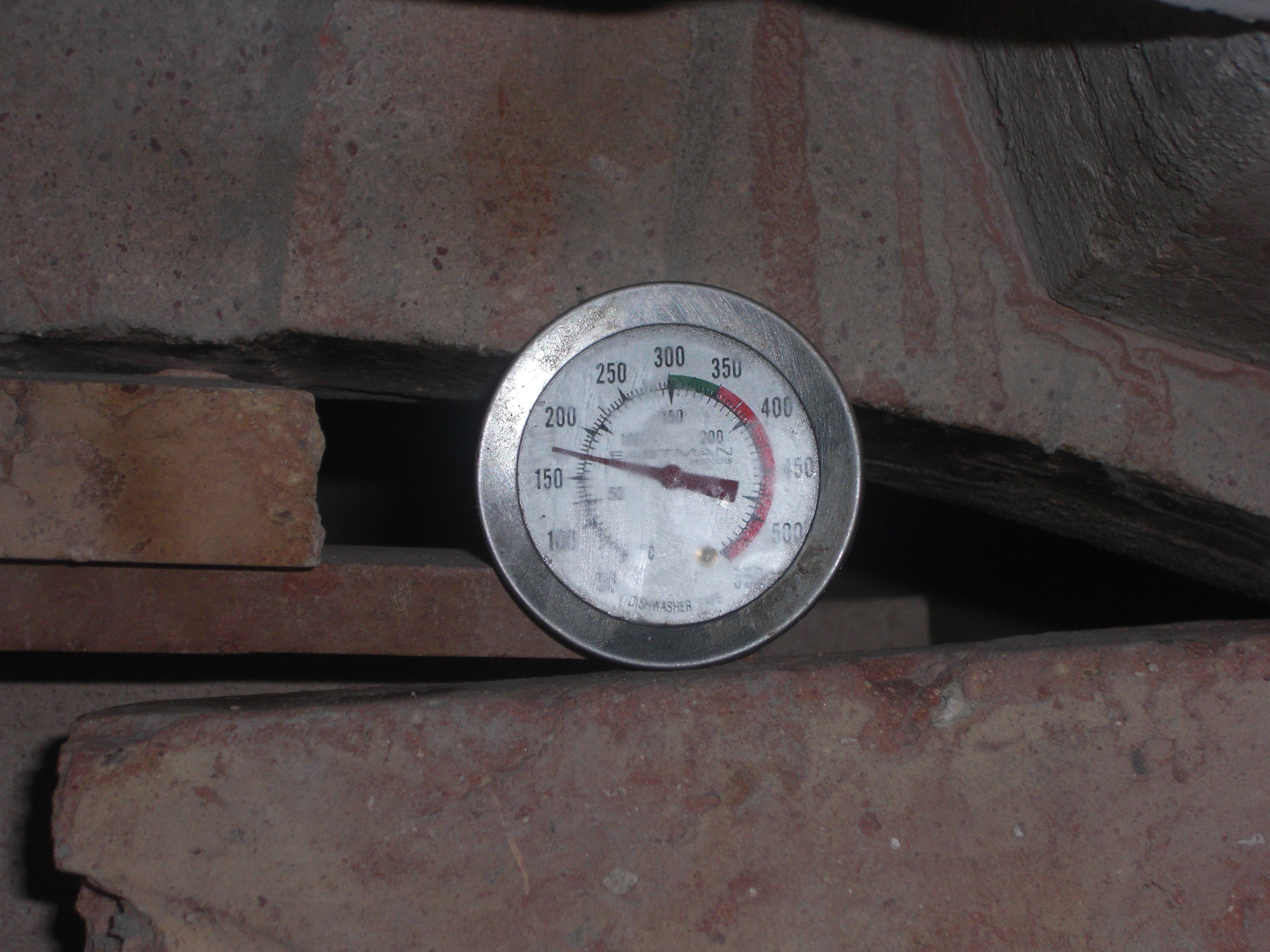 Just a quick post. The oven temp is at 175-ish. It's been sitting with this make shift door since Sunday night with no additional fireing. I'm going to assume that it's doing it's job right?