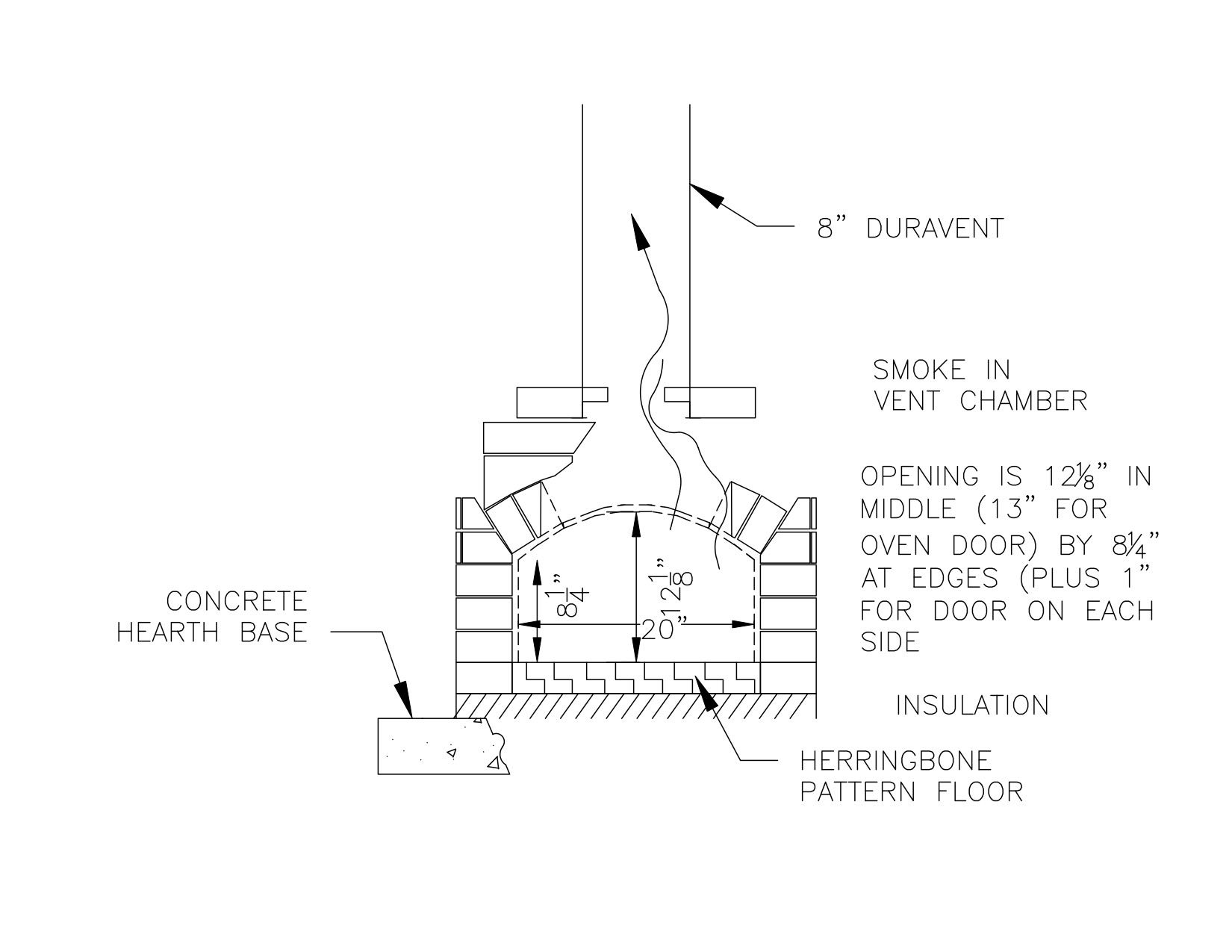 I have a question on a CAD mock-up you did for Gene for a 36 inch oven to see if Gene could fit it on his stand... I am building a 36 inch myself... All measurements are in the CAD (although I will probably go for a smaller doorway), except how far from back wall to inside of the inner arch.
