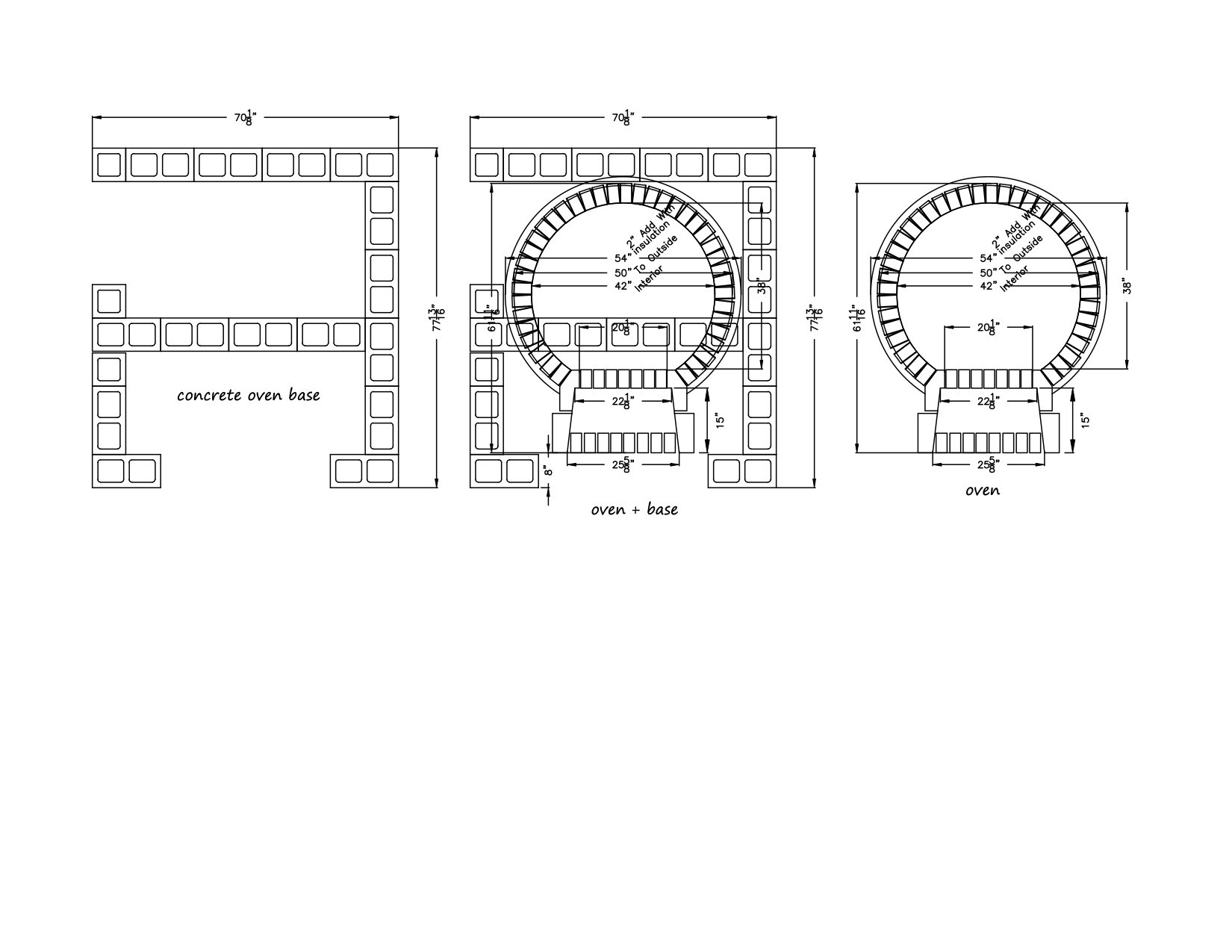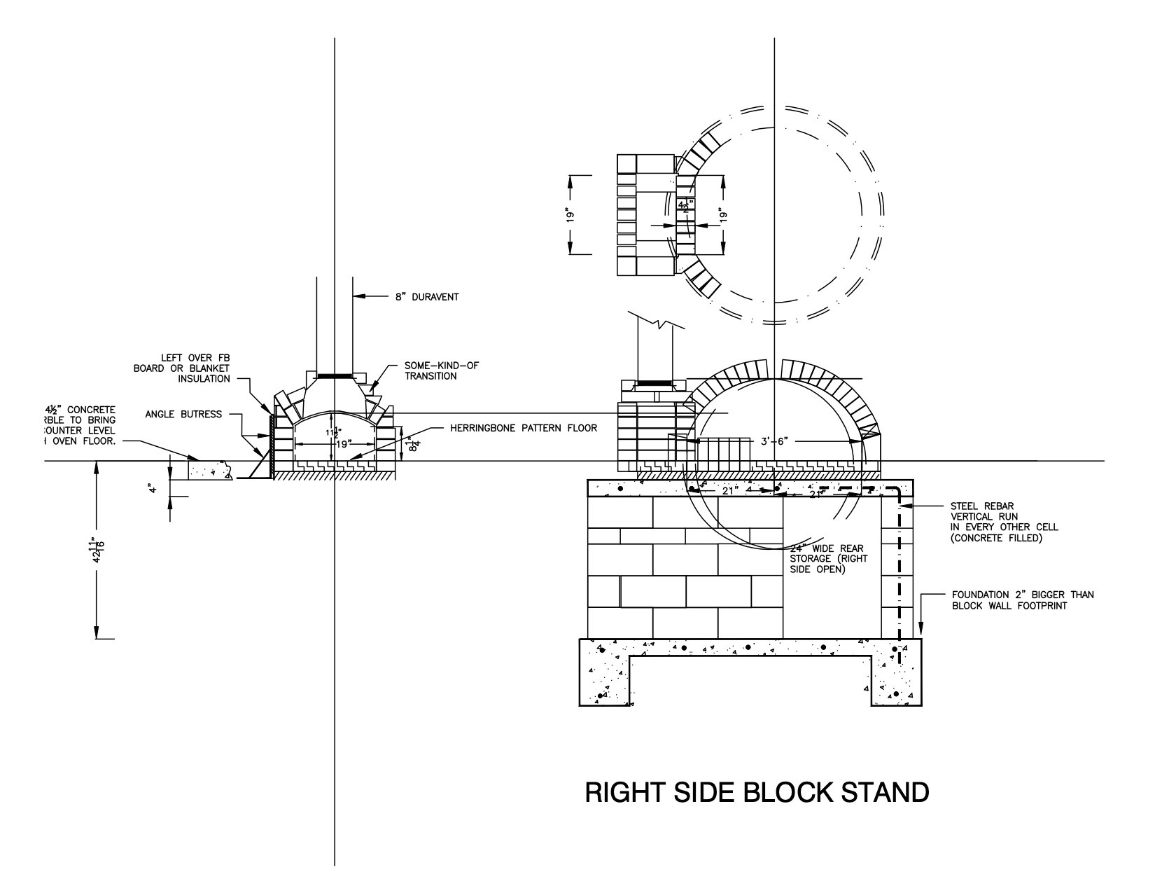 I have a question on a CAD mock-up you did for Gene for a 36 inch oven to see if Gene could fit it on his stand... I am building a 36 inch myself... All measurements are in the CAD (although I will probably go for a smaller doorway), except how far from back wall to inside of the inner arch.