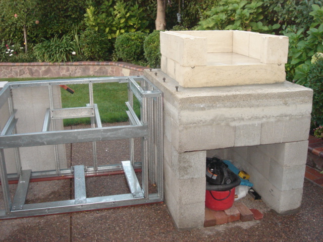 Well I got side-tracked for a few weeks by starting the framing to my outdoor kitchen which I attached to the oven hearth. I plan on setting the oven floor tonight when I get home from work and I decided not to fill the cavities but since the floor is in 3 pieces, do I put mortar in between the joints or just dry fit them?