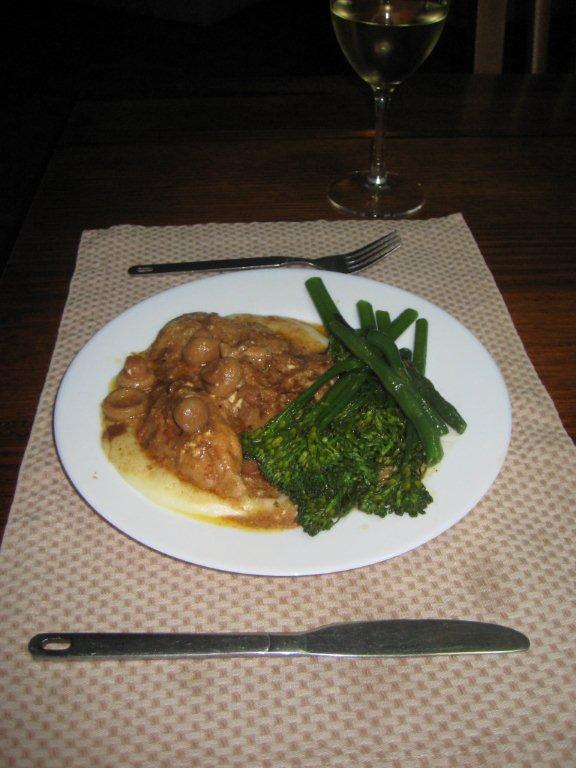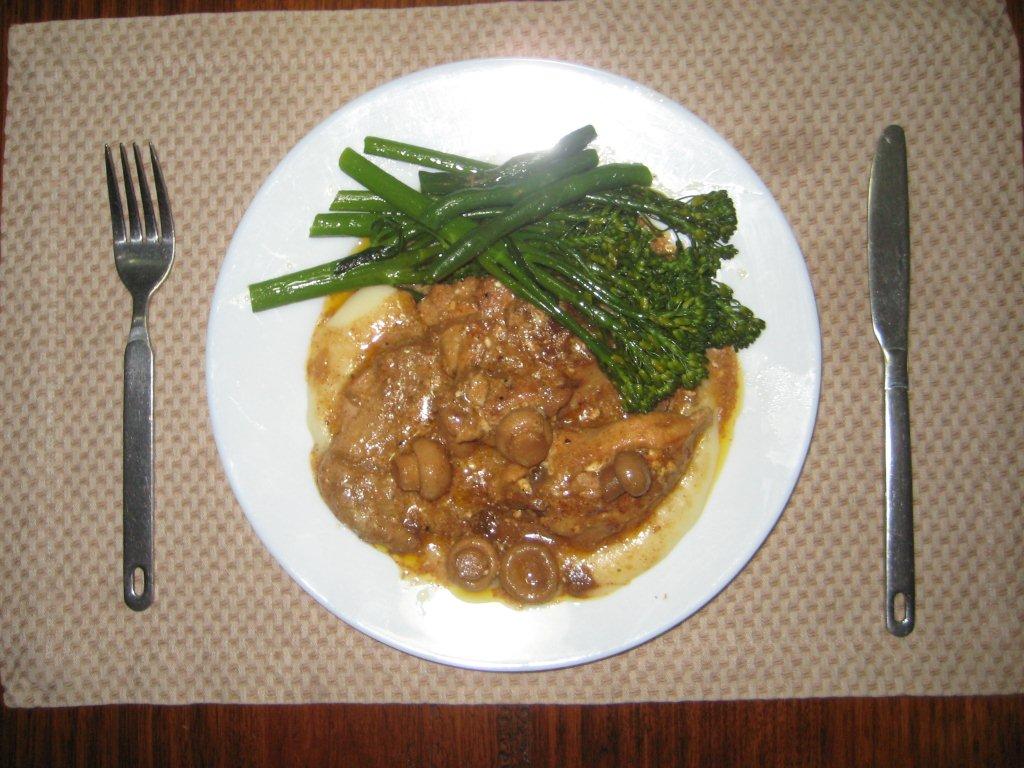 Seved with pumpkin mash and baby snow peas.