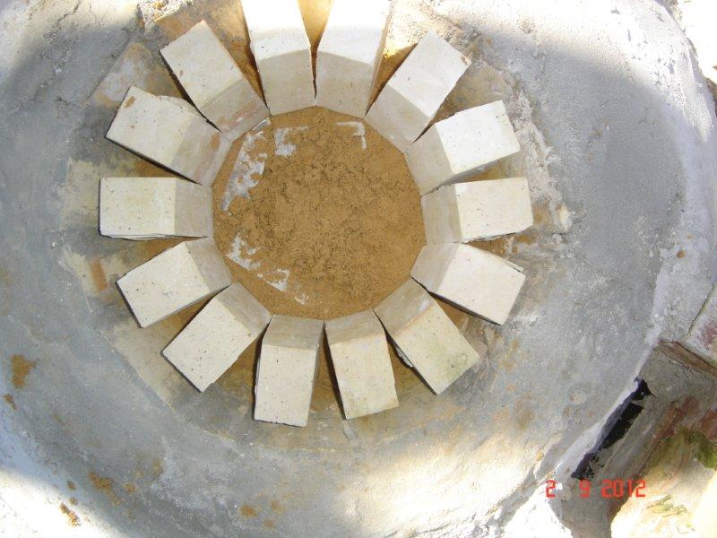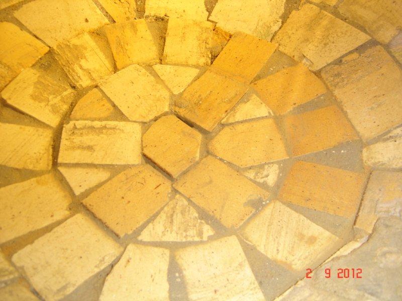 last weekend. Cut a disk of mdf and positioned under the 9th course to hold bricks in place. Spent the afternoon cutting and numbering the bricks to fit so I might mortar next weekend. Boy is that fun