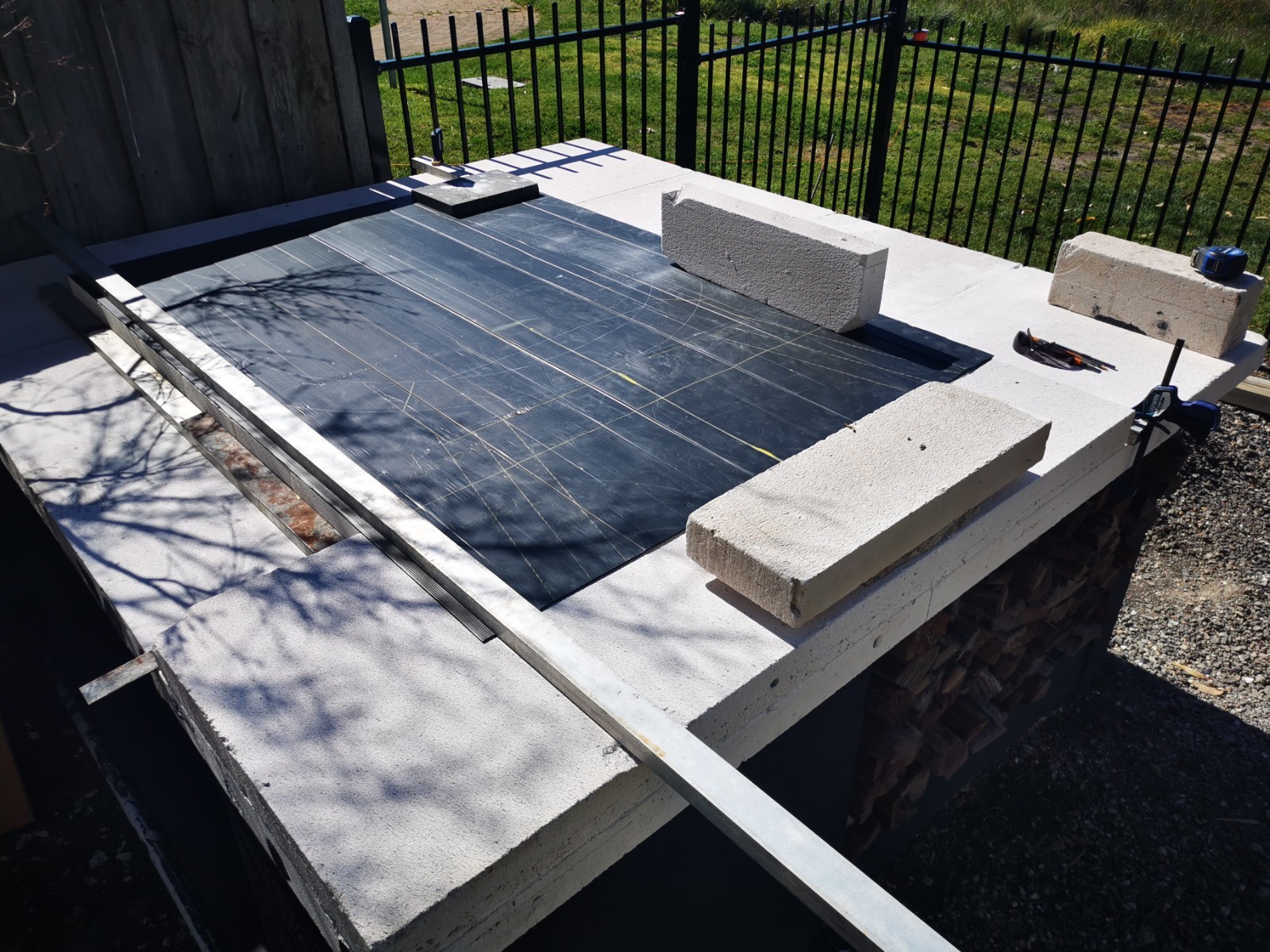 The top is 2200x2400 on a 2200x2200 base. As for the front I purchased extra bricks when i built the first oven so the front will be the same. The flue I used was imported from the US however they are now nearly $500 more. I sourced my flue in Australia this time and actually I purchased it last week and waiting for delivery. It is double insulated - checkout Timeless Classic Wood Stoves - they are in SA and only charged $65 delivery.