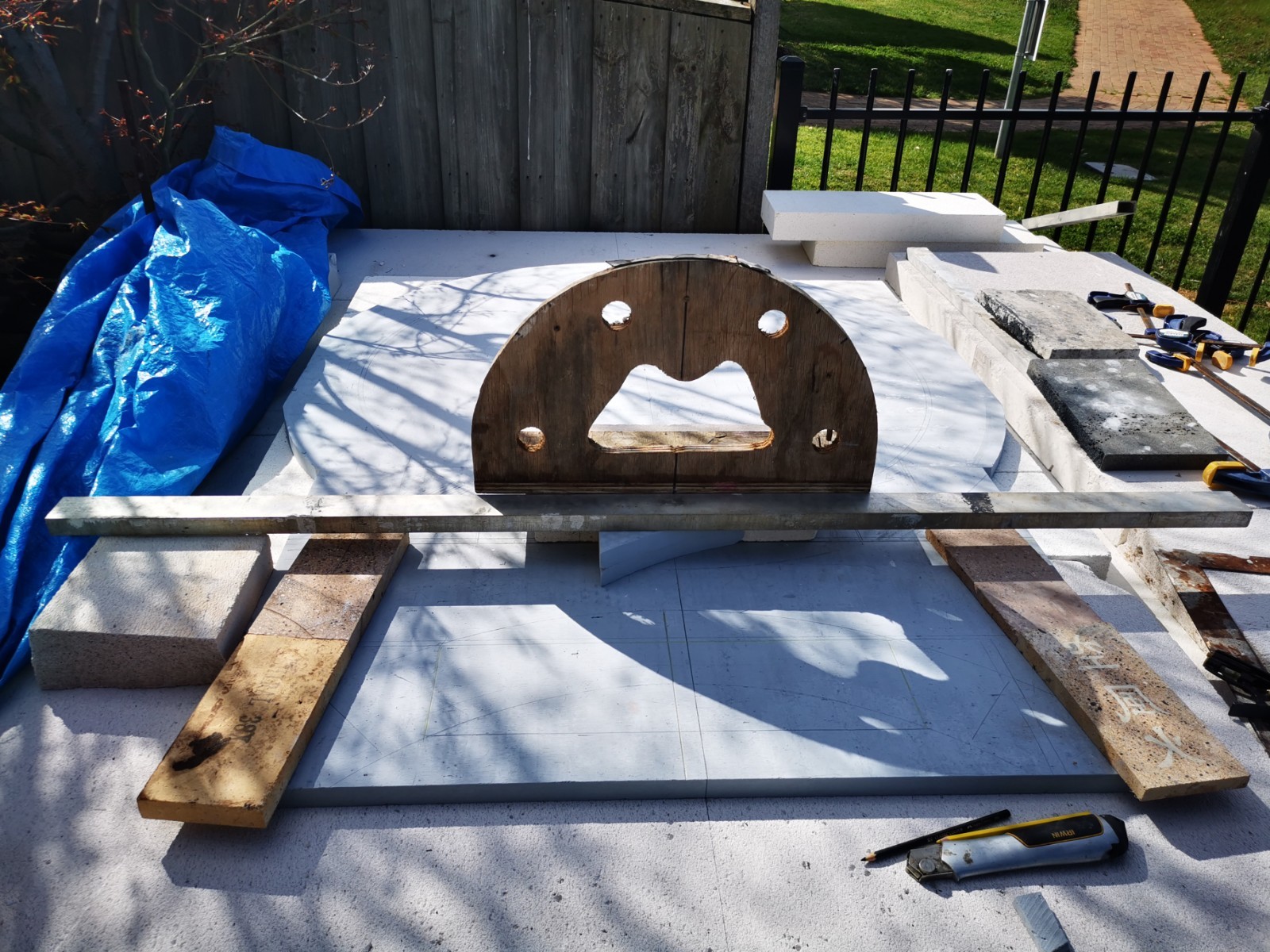 Oven base completed and I'm up to the hearth but alas I have no room to set up the brick saw.