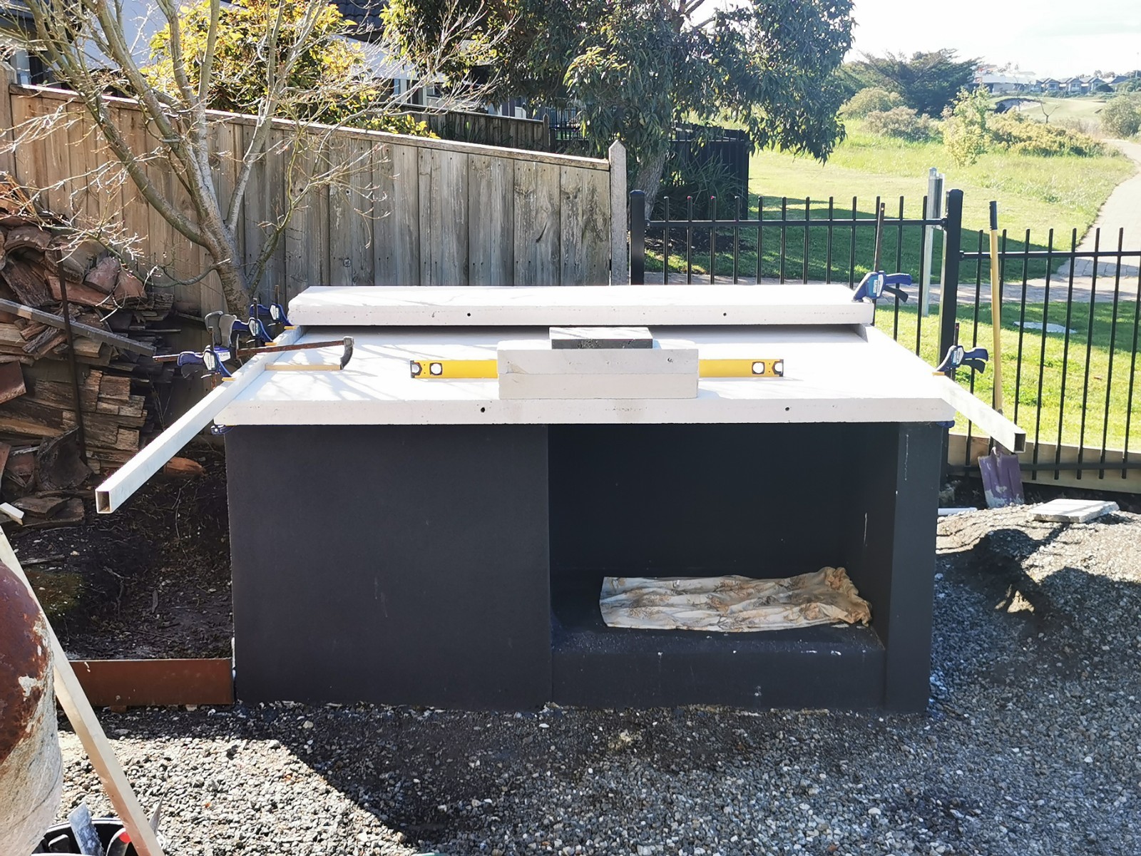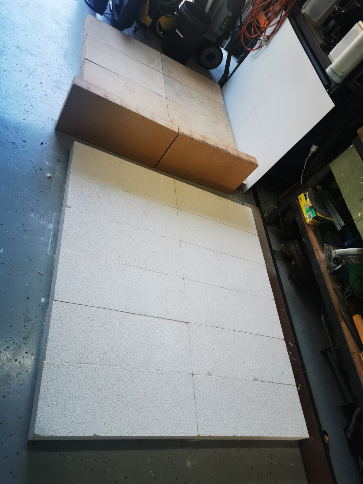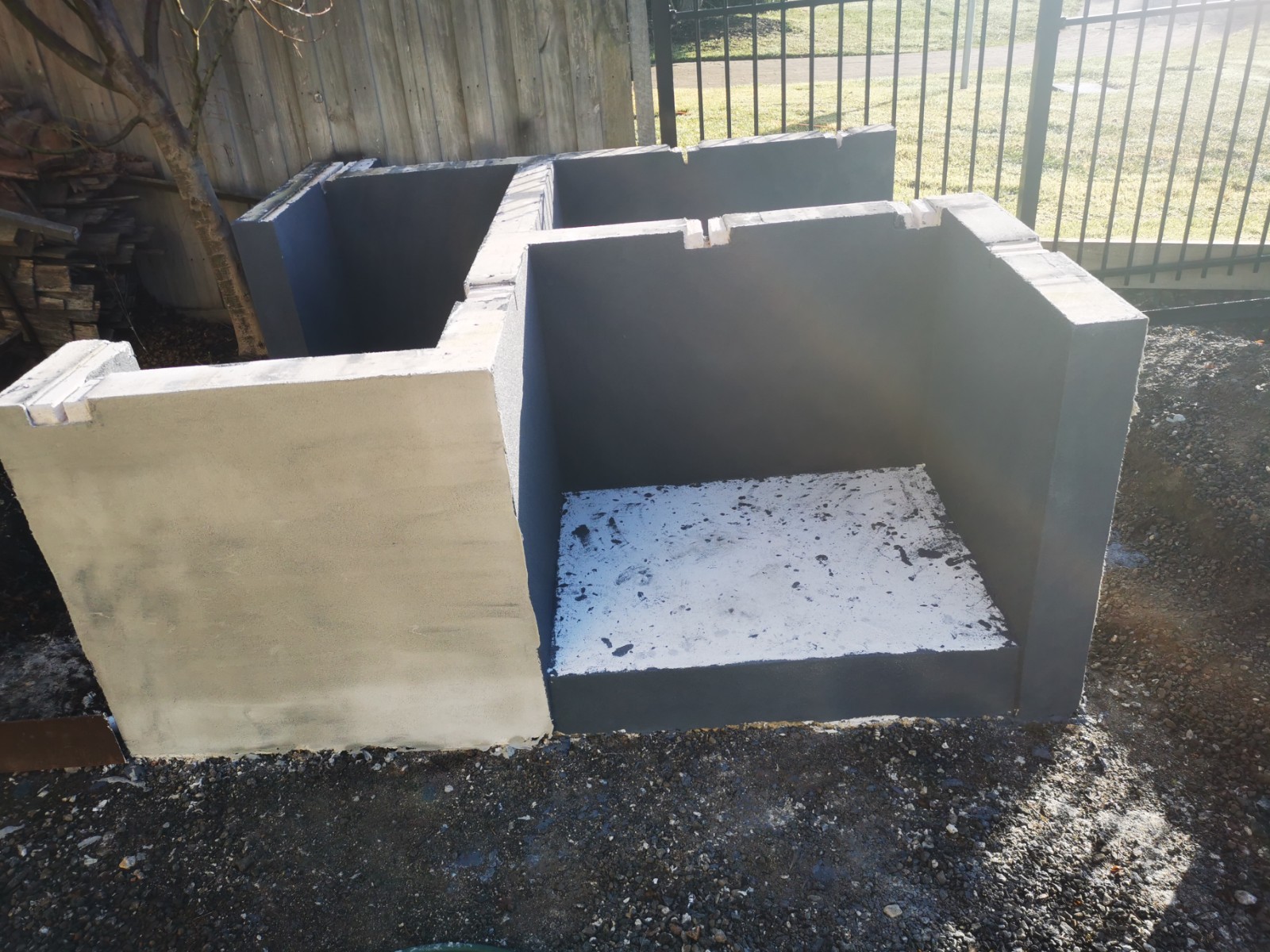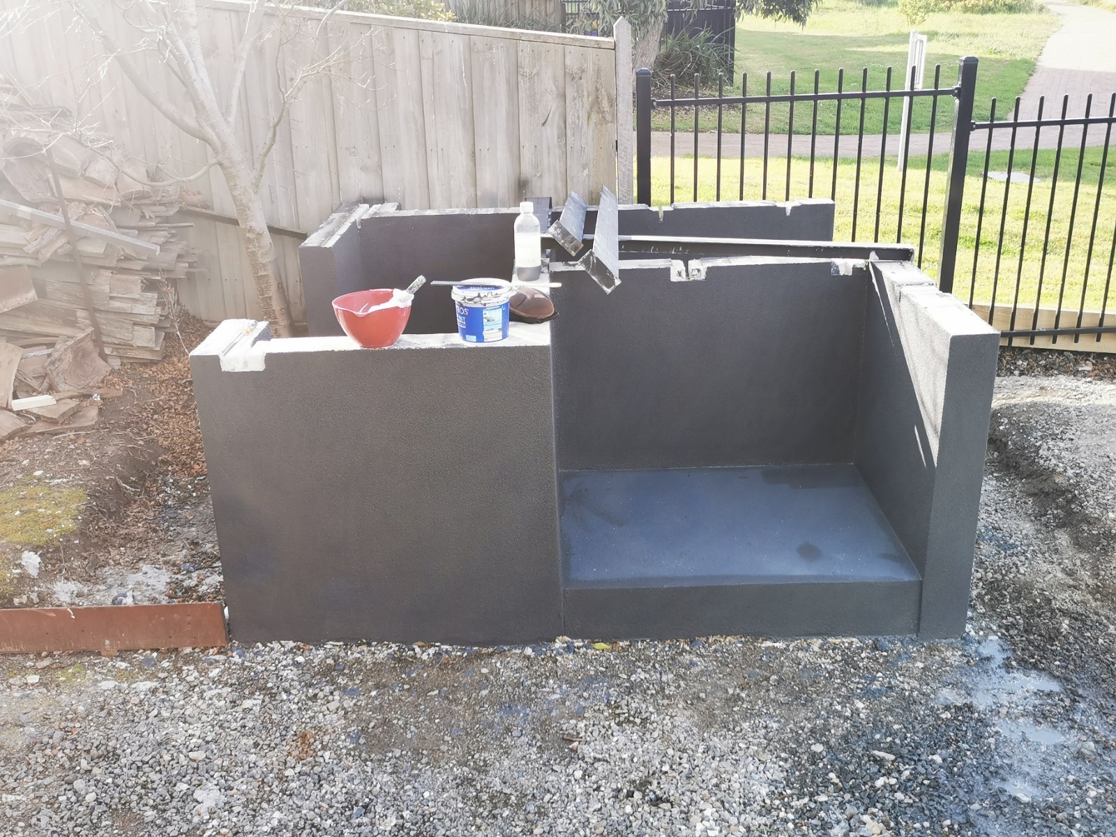 Yes, onto it. I have 4 power panels sitting on my front porch. picked up for $40 each bargain. The whole base will be rendered and sealed. Cant seal the tops of blocks, as the adhesive has to bond to the panels and blocks to create a solid monolithic structure. I did lay a damp course between concrete and the first course of Hebel. Pretty much same as first oven just bigger.