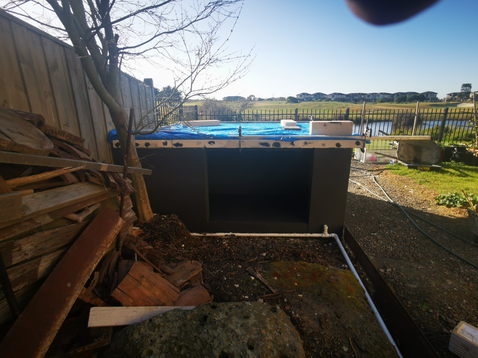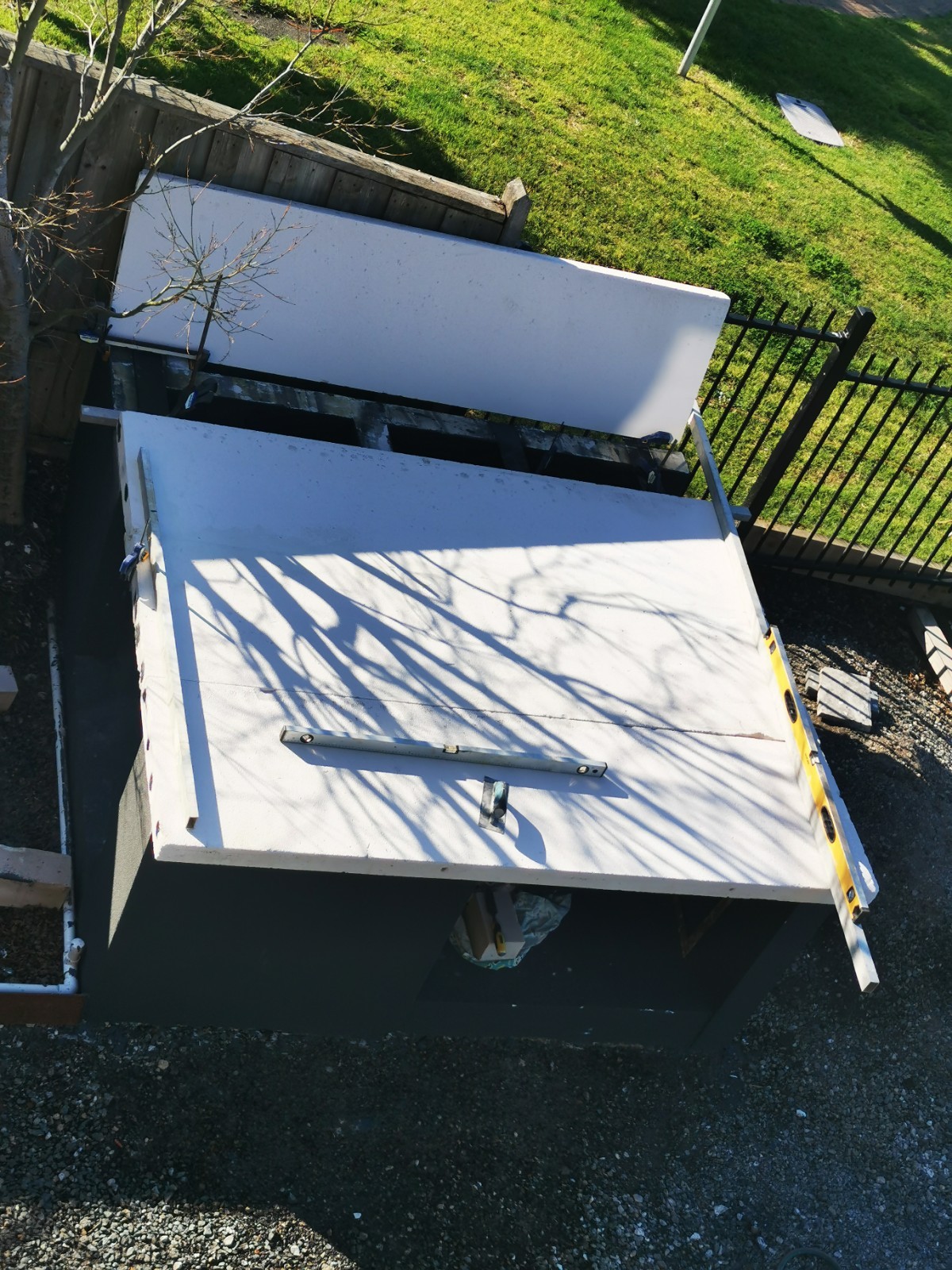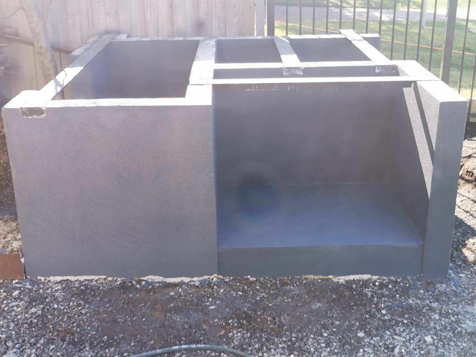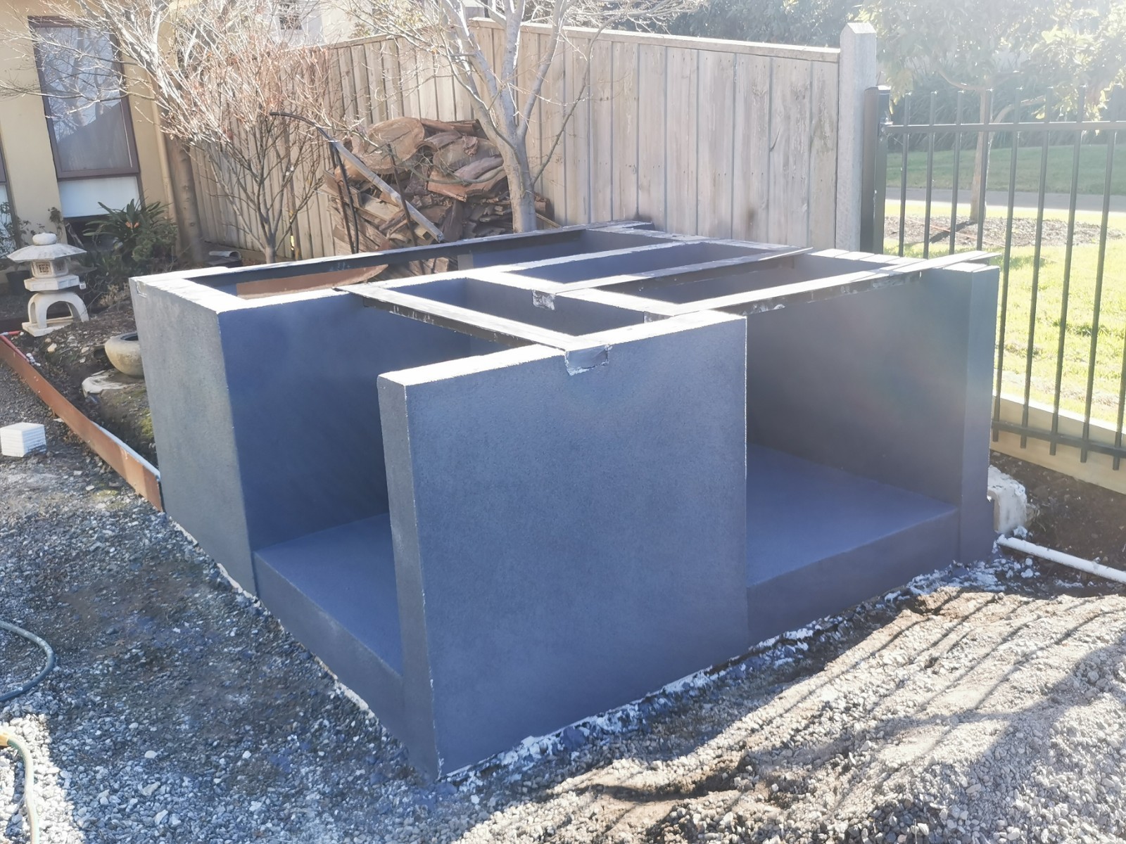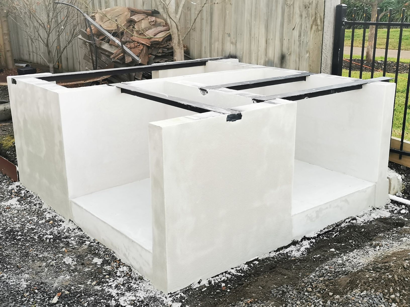Yes, onto it. I have 4 power panels sitting on my front porch. picked up for $40 each bargain. The whole base will be rendered and sealed. Cant seal the tops of blocks, as the adhesive has to bond to the panels and blocks to create a solid monolithic structure. I did lay a damp course between concrete and the first course of Hebel. Pretty much same as first oven just bigger.