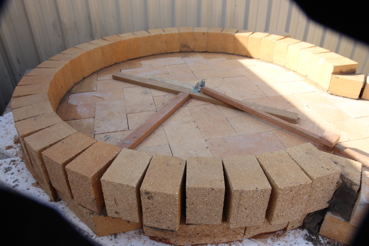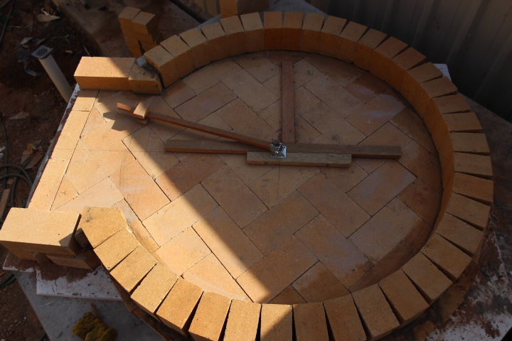 1100 internal dome, but this time have decided to use firebrick for base and dome. Two or three layers of Ceramic blanket and chicken wire then layer of vermiculite and cement, more chicken wire then two coats of render and wire finished off with waterproof sealant as the oven will be exposed to the elements.
