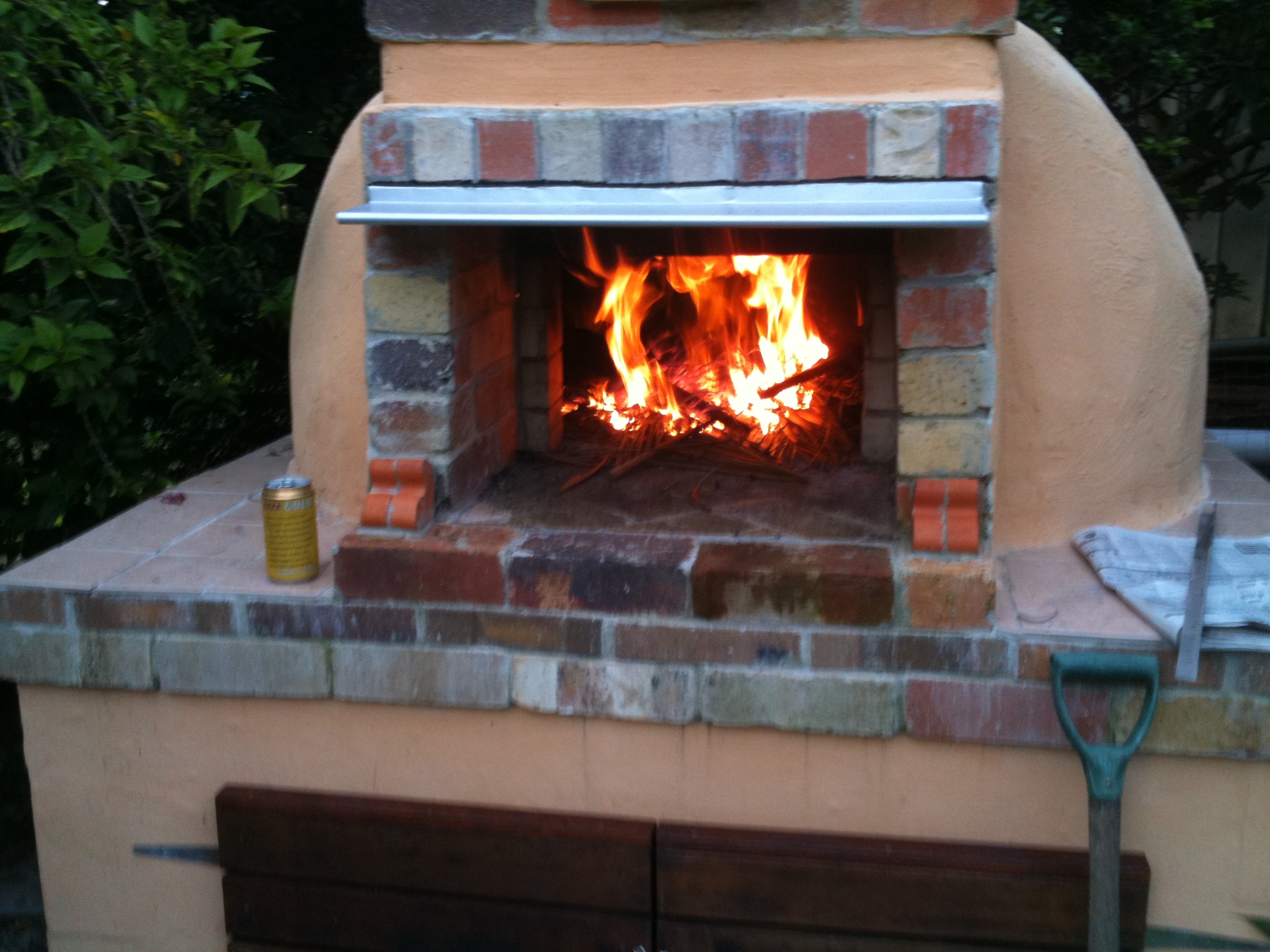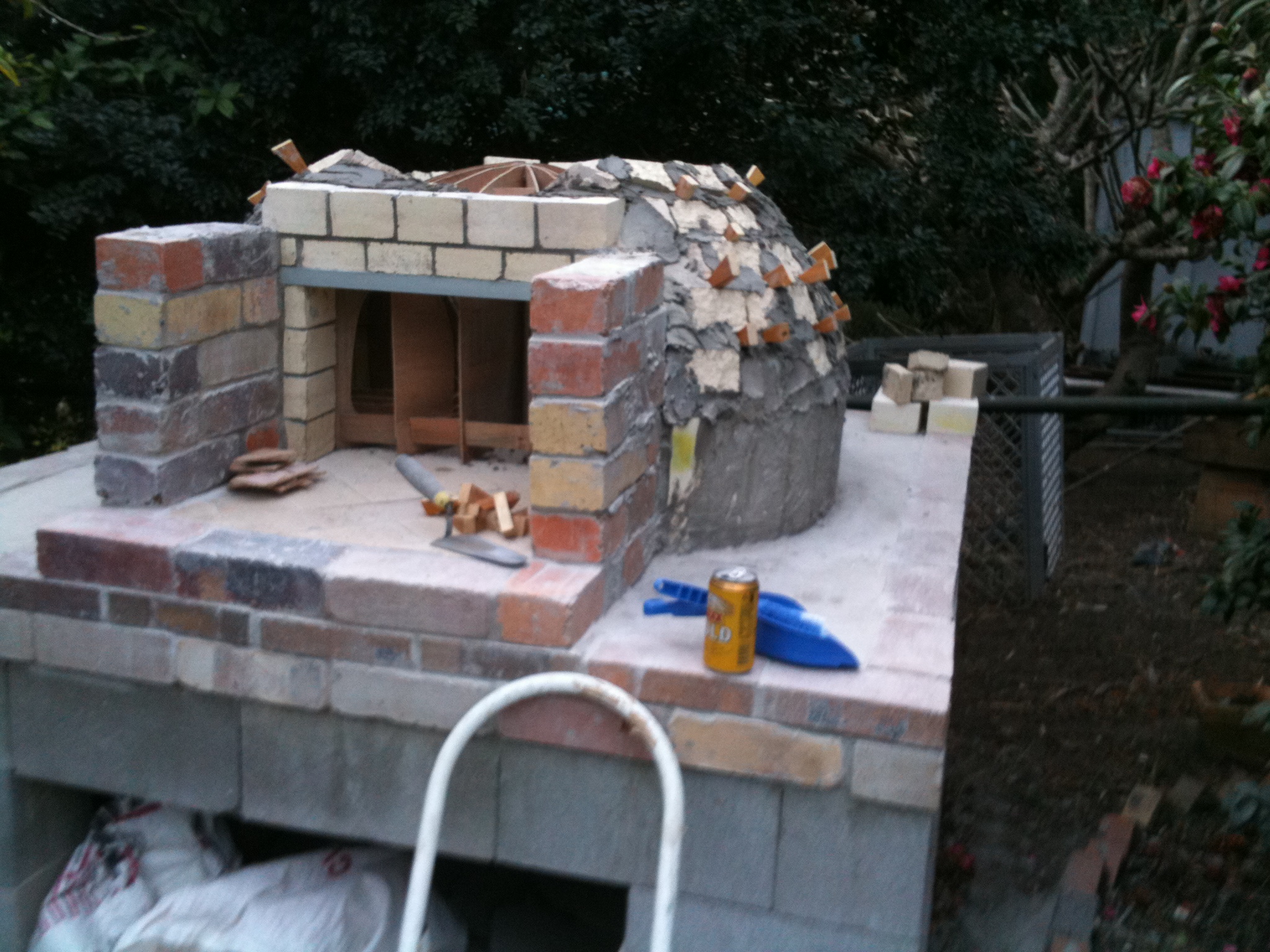 Now the depth of the entrance to the oven to the dome I used 1 and 1/2 stardard bricks... forget that... none standard bricks. Measured my oven entrance ( hope you appreciate this as its pouring rain) 350 mm or 14 ins. I recon any deeper and it makes it harder to use the oven as you have to pass everthing down a big long tunnel.