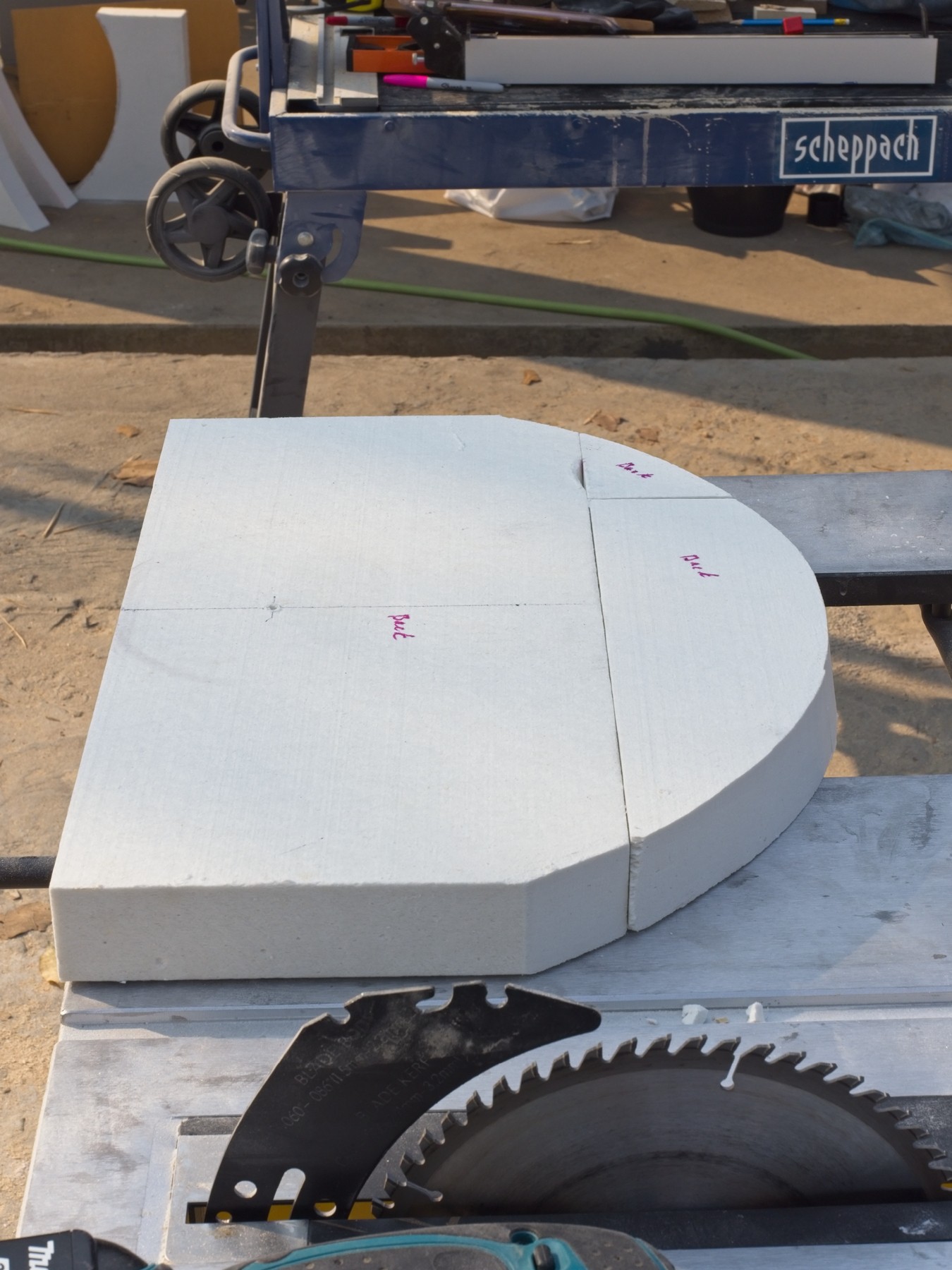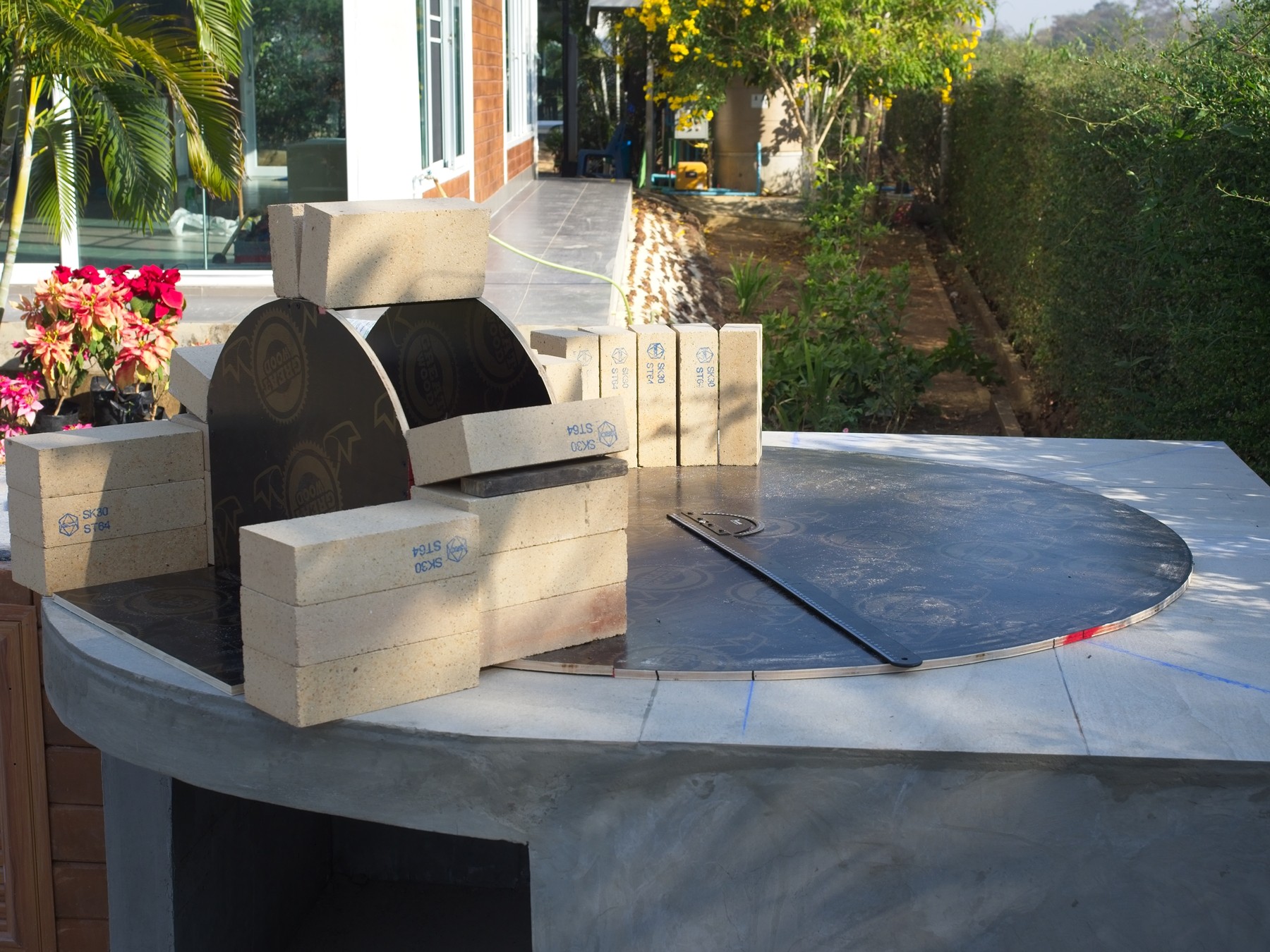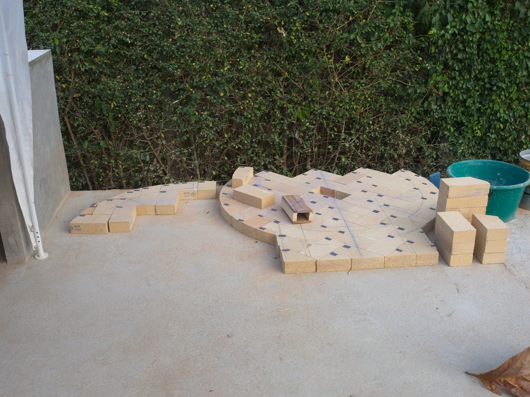 The cement truck was in the driveway, and they poured cement into wheelbarrows: