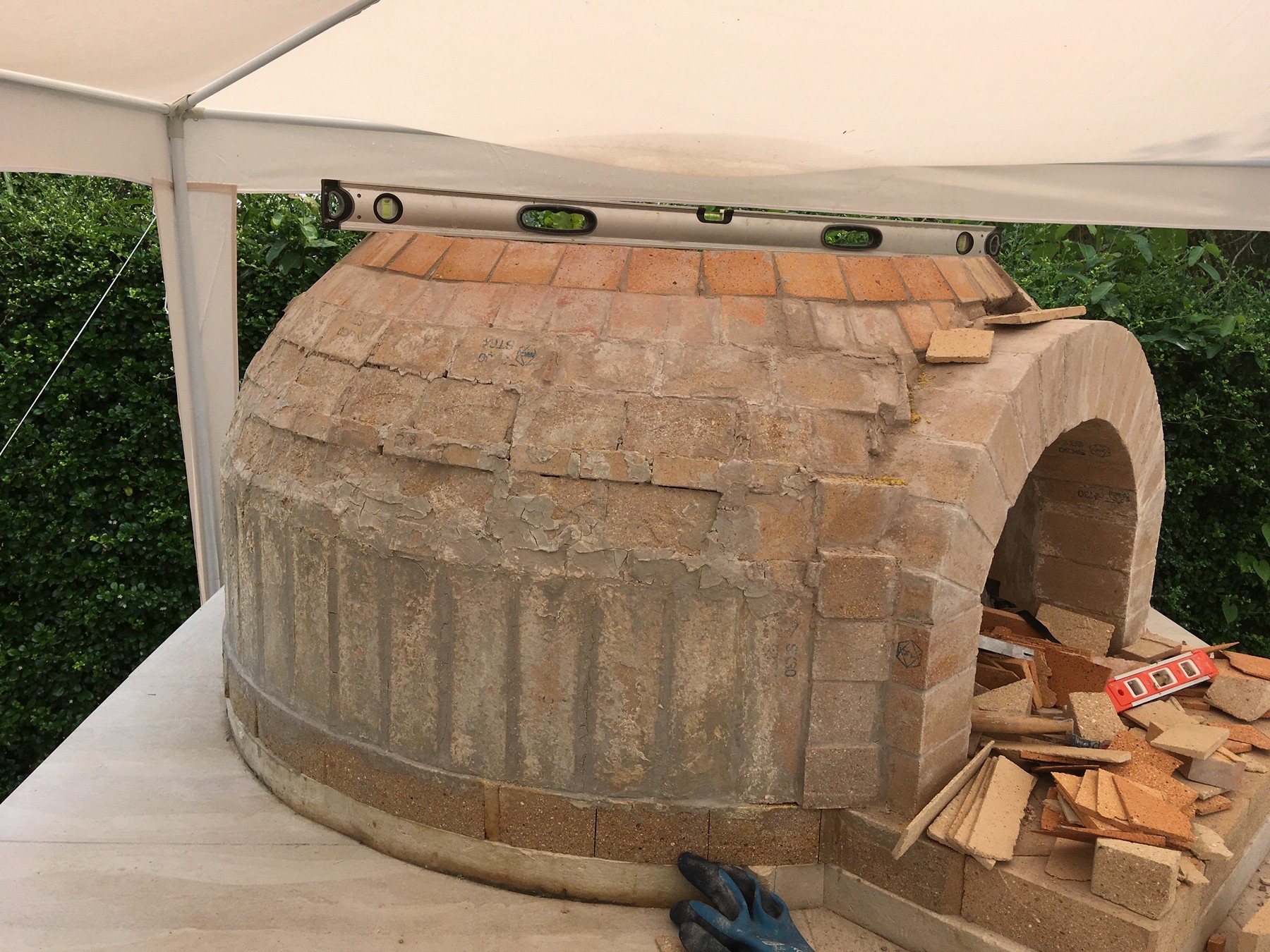I actually ripped down my outer arch built with refractory and rebuilt with the homebrew. Its much easier to work with. Also finished off the vent and flue area with the home brew and am very happy with how it has turned out. Time will tell whether the dome will hold up. Ripping down the outer arch was a bit of a struggle - the mortar was pretty well set, which has filled me with a little bit more confidence that the dome will hold up.